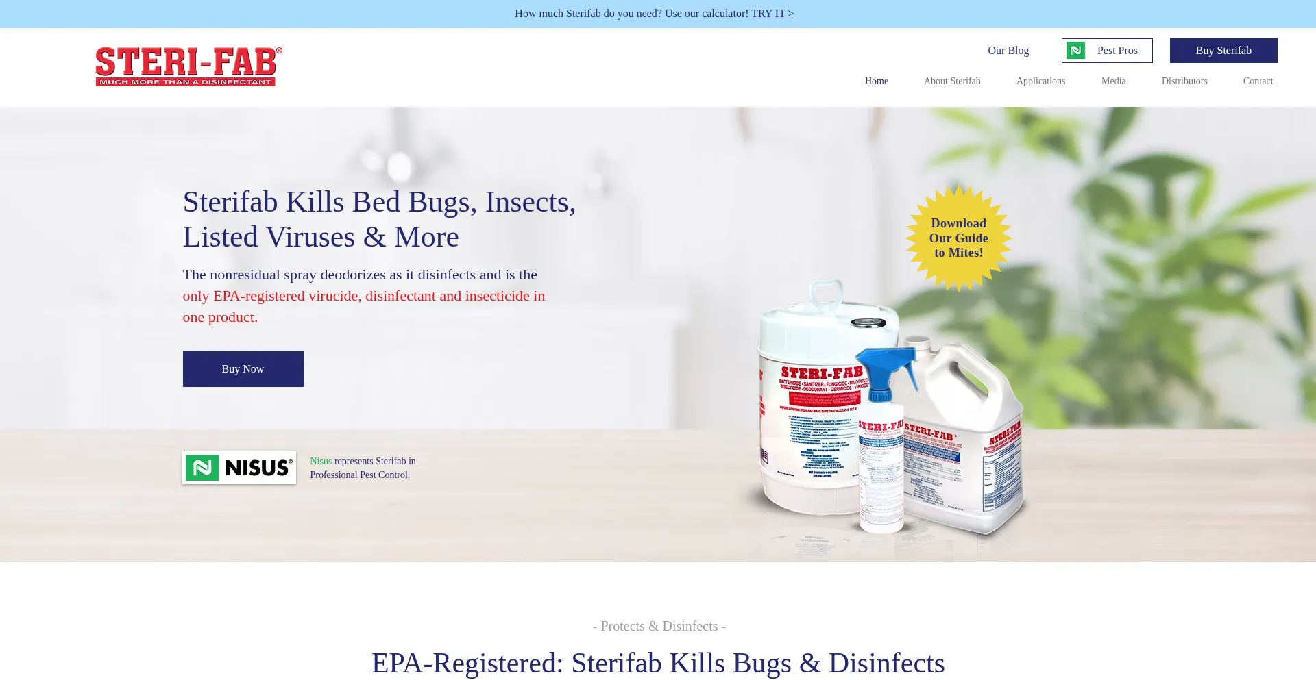 Sterifab spray kills bed bugs, fleas, ticks, mites, mold, mildew and more. Sterifab is the only EPA registered disinfectant and insecticide in one product and is extremely effec...