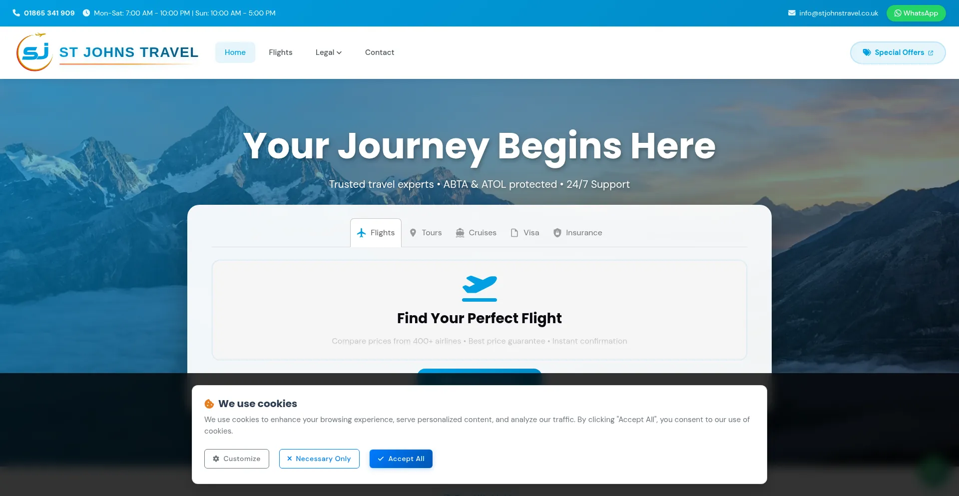 Book affordable flights, holiday packages, and customized travel with St Johns Travel - Your trusted ATOL & ABTA protected UK travel agency. Expert service since 2005. Call 0186...