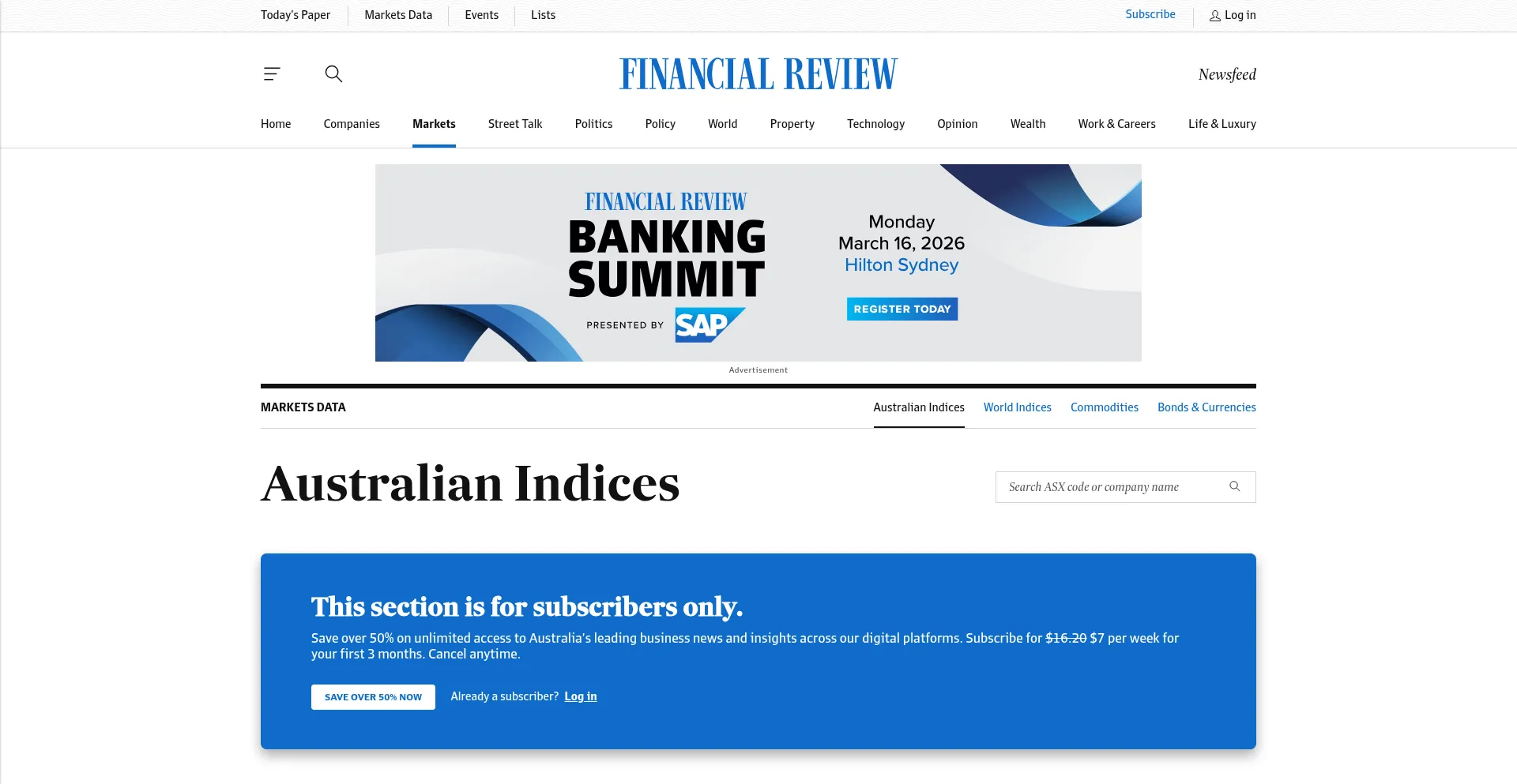 Markets Data | ASX Indices, Charts & Quotes | Latest Market News & Analysis | The Australian Financial Review | AFR