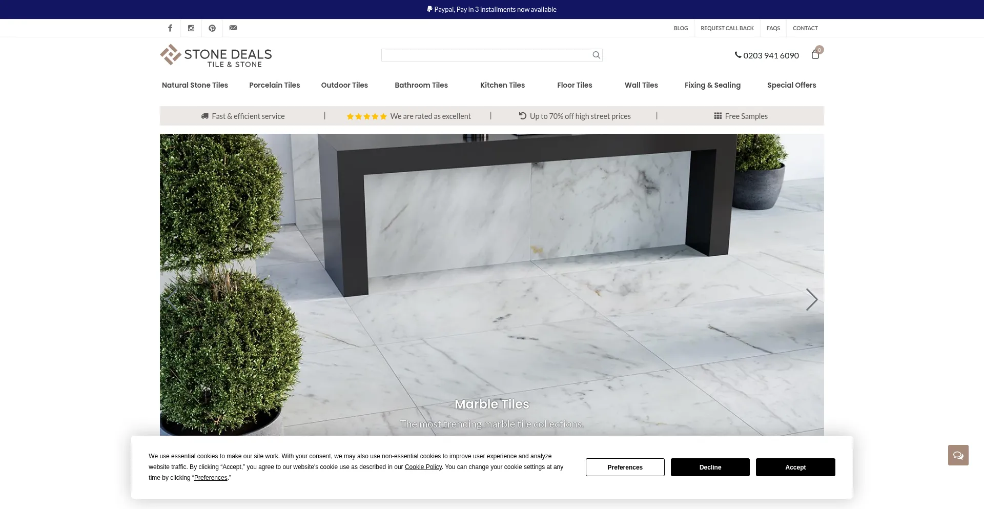 Buy natural stone tiles and porcelain tiles for walls and floors at the best prices. Shop online from the UK's best tiles supplier. Discounts up to 70%.