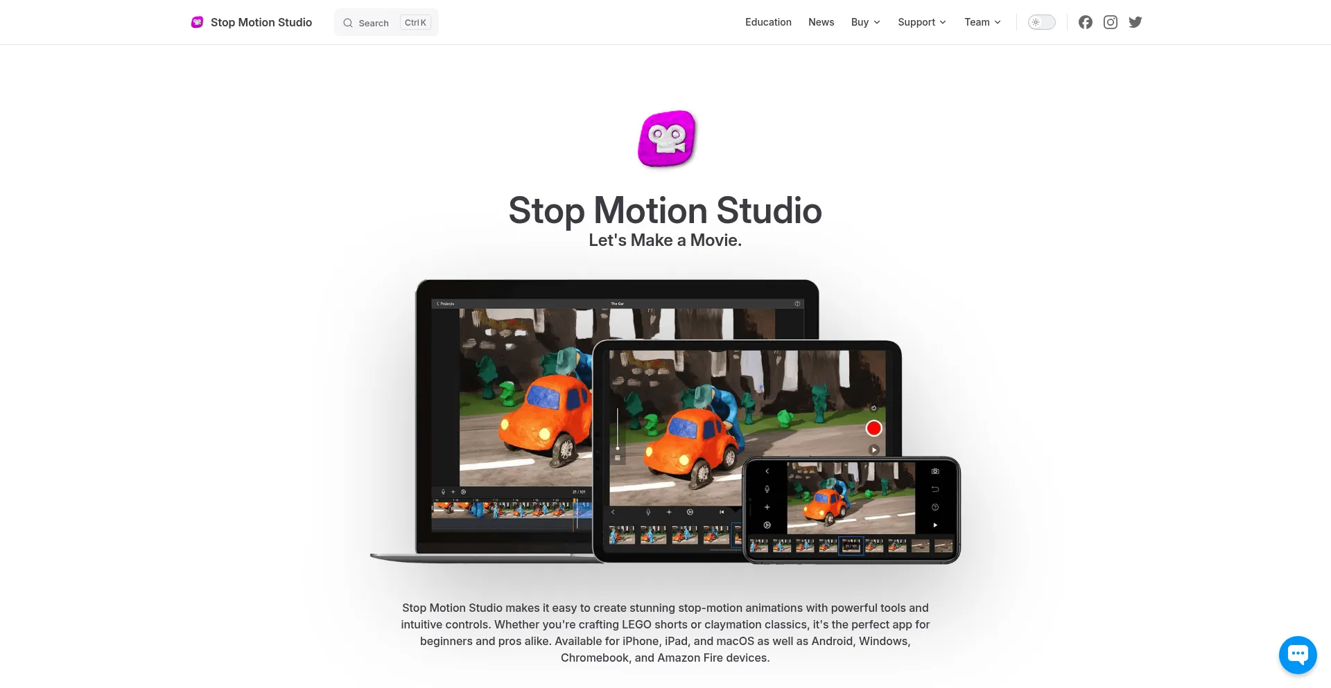 stopmotionstudio.com 拥有可用的 iOS 移动应用程序,表明为 Apple 设备用户提供跨平台可访问性。