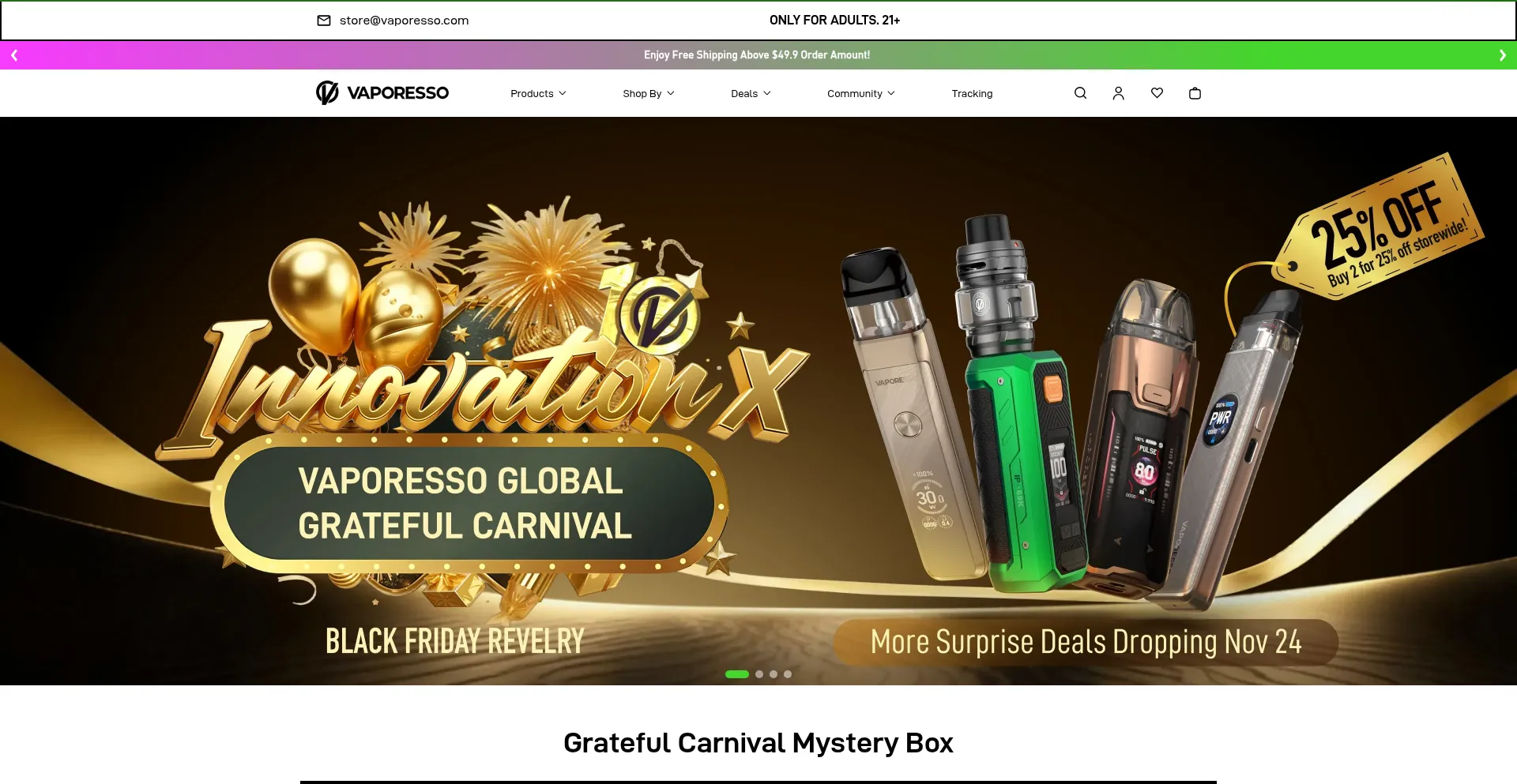 网站 store.vaporesso.com 使用免费电子商务平台解决方案,这可能表明成本意识运营,但也可能暗示与企业级解决方案相比在安全功能、客户支持或高级功能方面的限制。