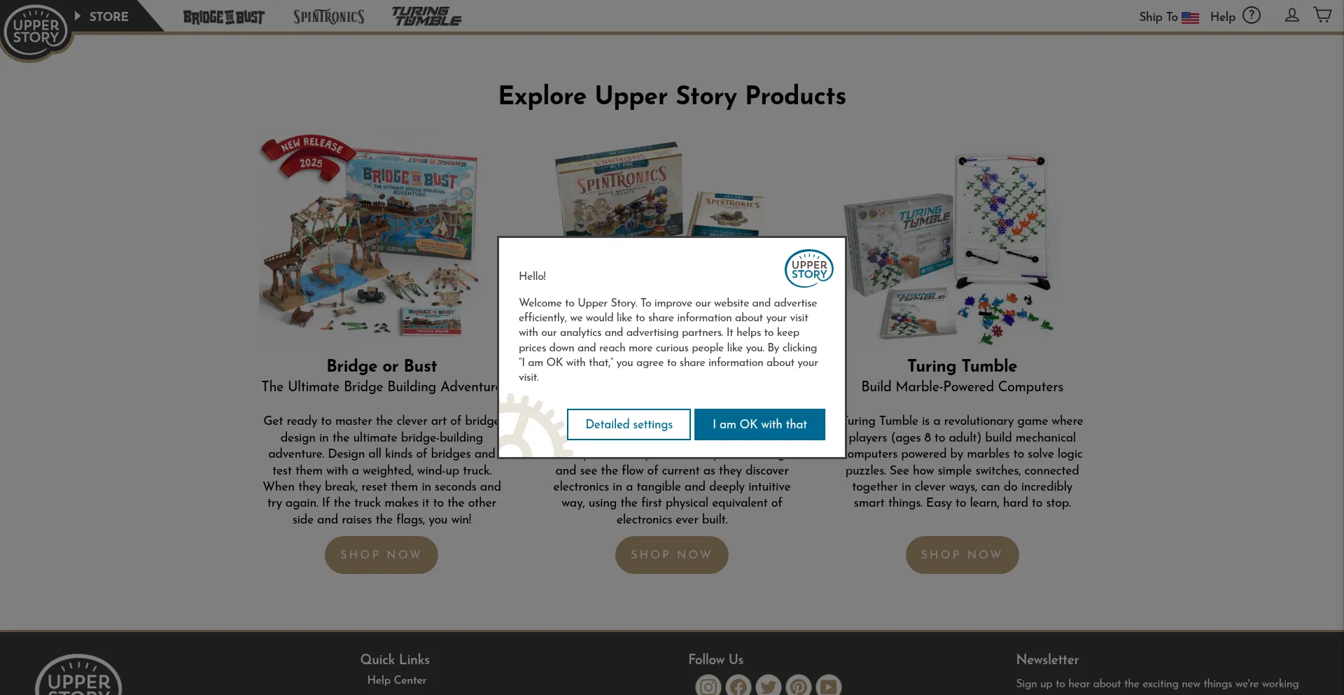 网站上存在社交媒体链接表明 store-ca.upperstory.com 在社交媒体上维护官方账户,这是可信度和参与度的积极信号。