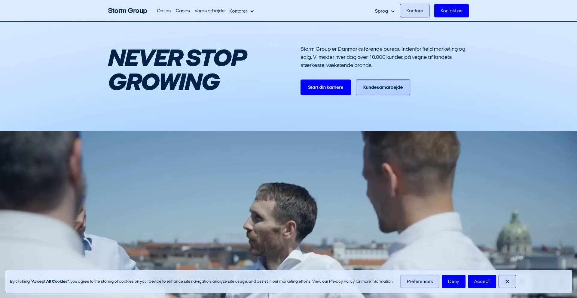 Storm Group er Dannmarks førende bureau indenfor direct marketing og salg. Vi møder hver dag over 10.000 kunder, på vegne af landets stærkeste, vækstende brands.