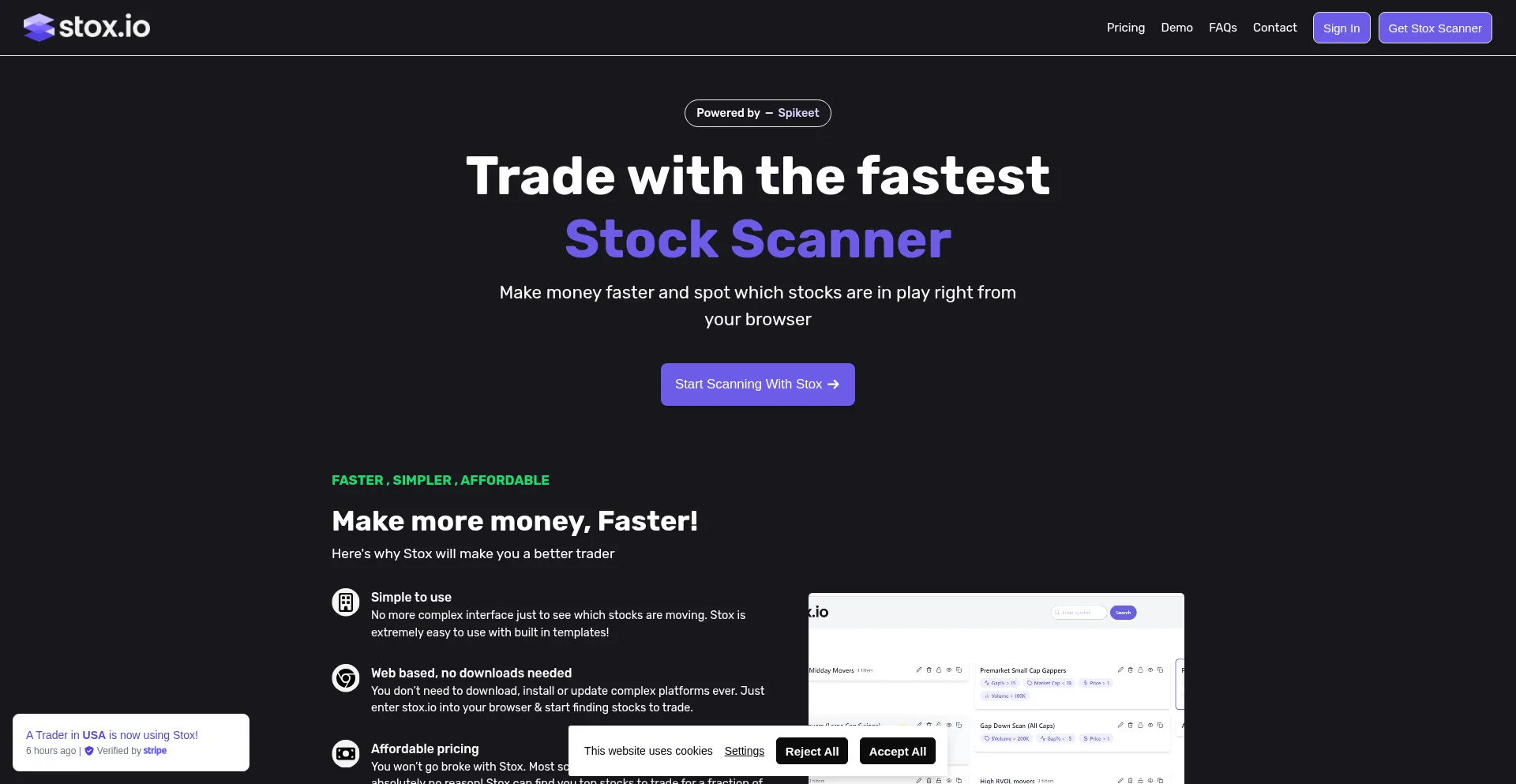 该网站实现符合GDPR或CCPA等隐私法规的cookie同意机制。这表明 stox.io 遵守数据保护标准并为用户提供对个人数据收集实践的控制。