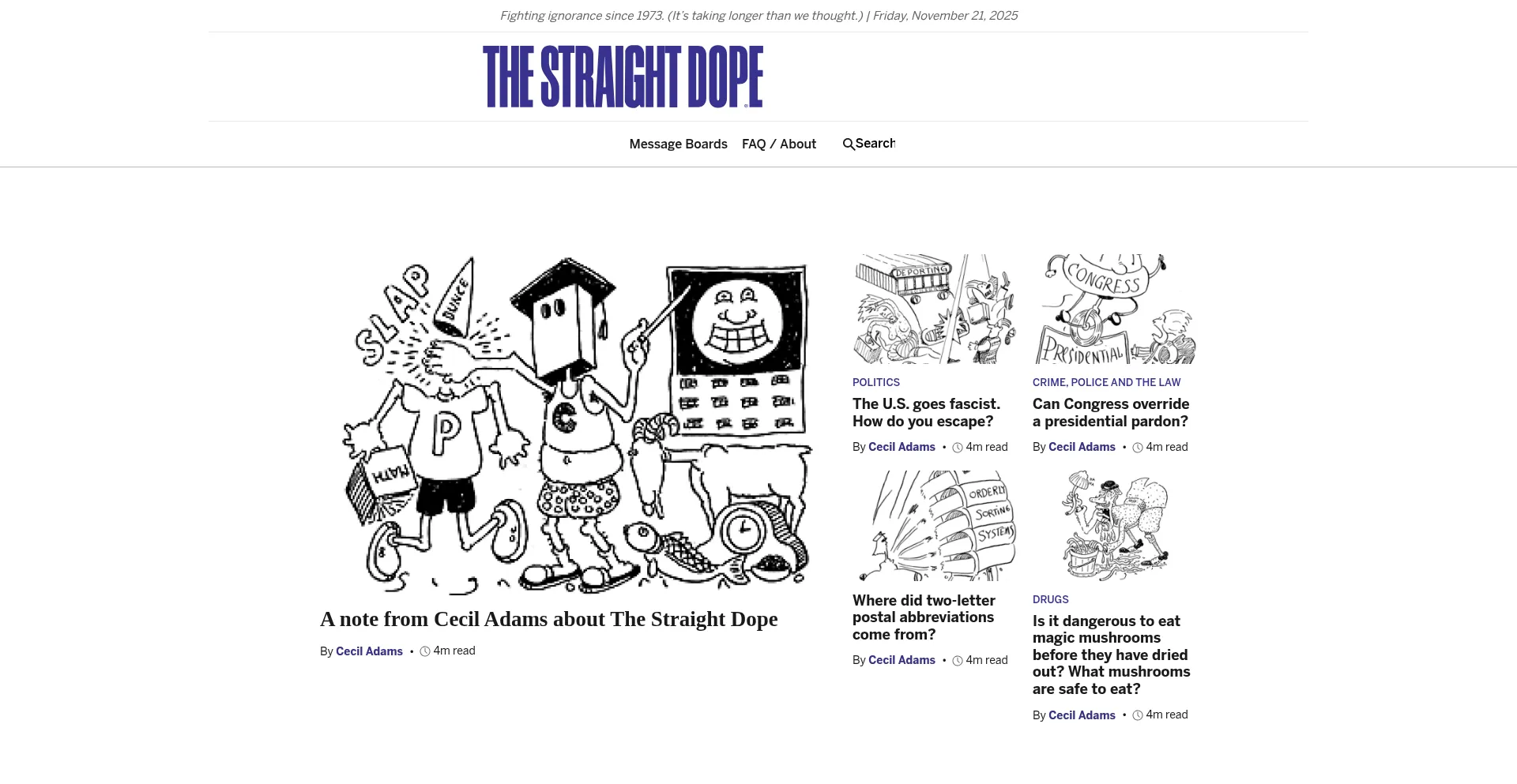 帮助保护他人,快在社交媒体上分享此页面吧!知道straightdope.com的人越多,骗子就越难得逞。 通过在社交媒体上分享此页面,帮助更多人发现可靠的straightdope.com吧!