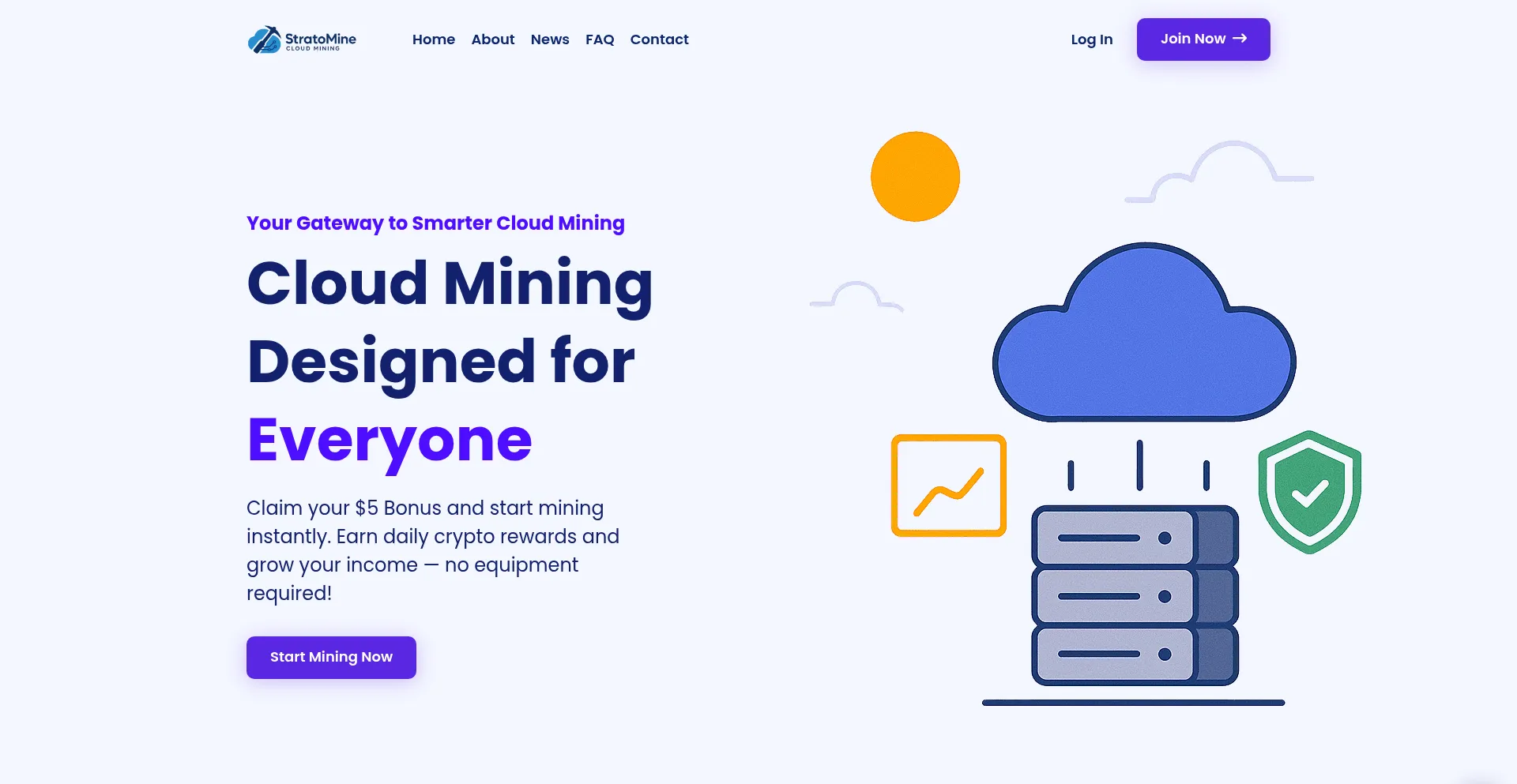 Start cloud mining with StratoMine and earn daily crypto income. No hardware needed. Get $5 bonus to start mining today.