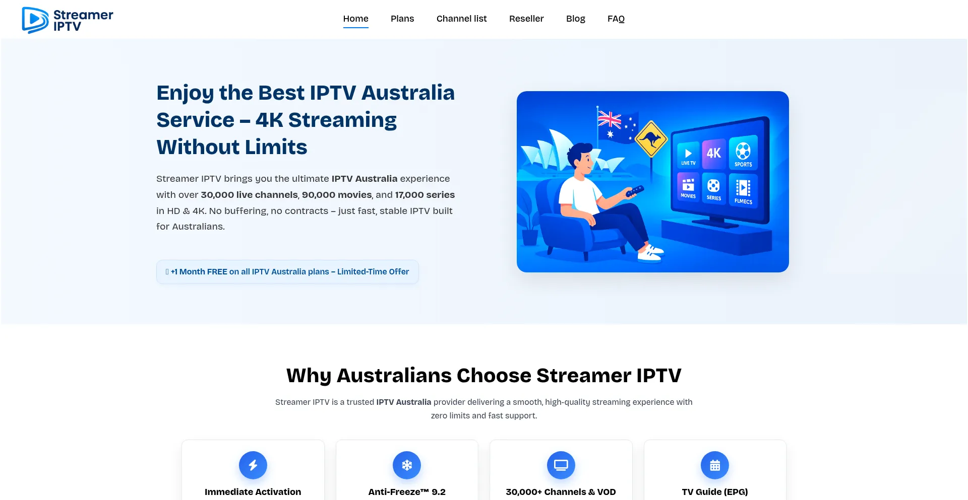 Get the best IPTV Australia experience with 30,000 live channels & 90,000 VOD in HD/4K. No contracts. Instant setup & 24/7 support on all devices.