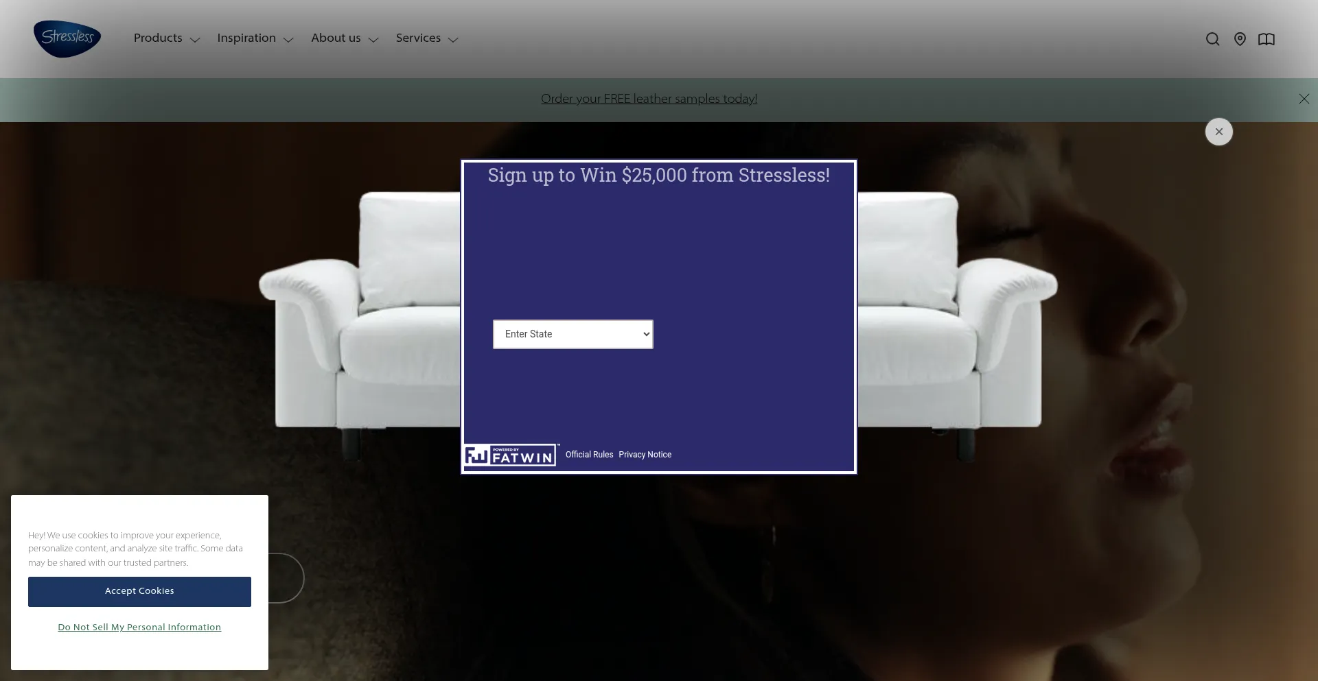 该网站实现数据收集表单,请求个人信息,包括姓名、电子邮件地址、电话号码或其他敏感详细信息。用户应验证 stressless.com 的合法性并在提交个人数据前查看隐私政策。