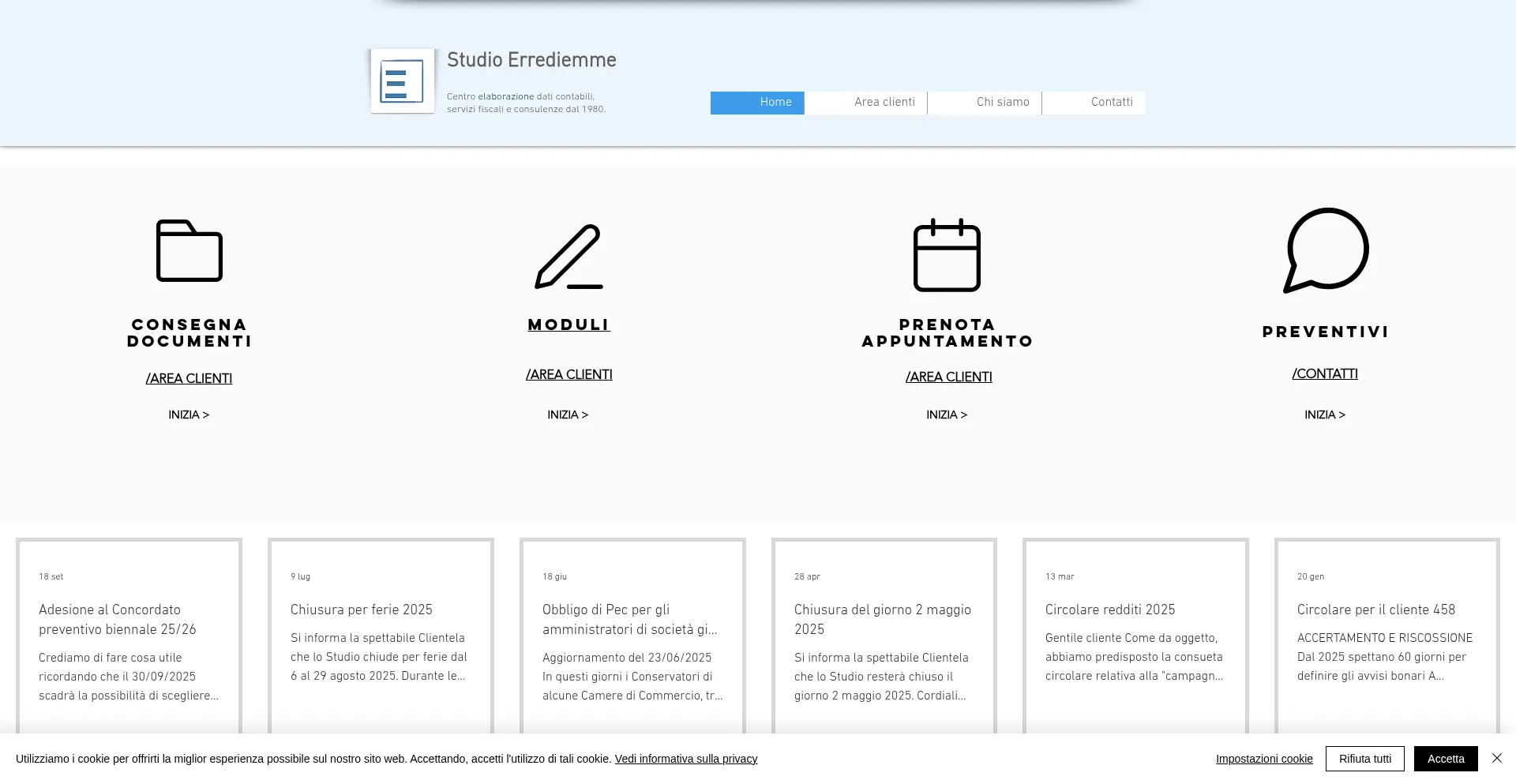 该网站实现数据收集表单,请求个人信息,包括姓名、电子邮件地址、电话号码或其他敏感详细信息。用户应验证 studioerrediemme.it 的合法性并在提交个人数据前查看隐私政策。