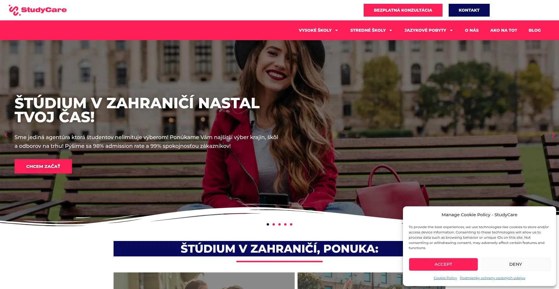 Štúdium v zahraničí so StudyCare. Vysoké školy, Stredné školy alebo Jazykové pobyte v zahraničí. Dohodni si konzultáciu možností.