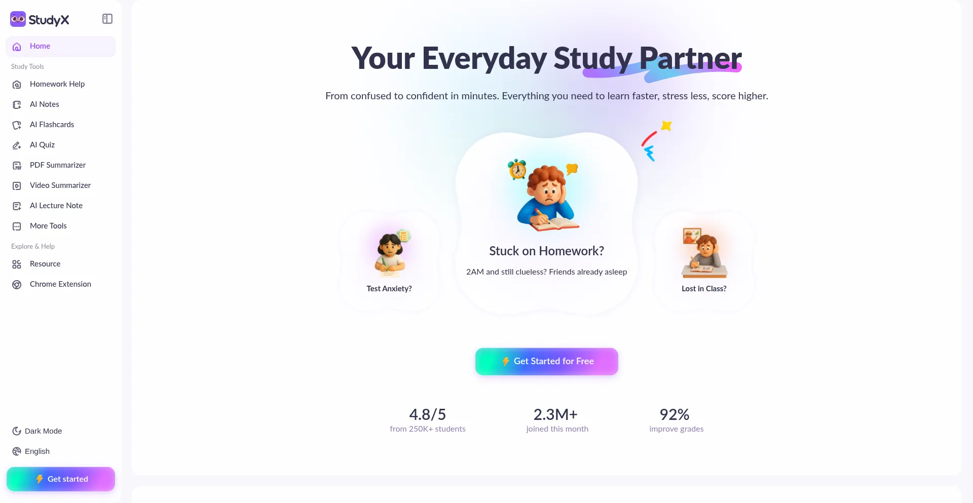 studyx.ai 提供 Android 设备移动应用程序,表明平台存在已扩展到网络服务之外。