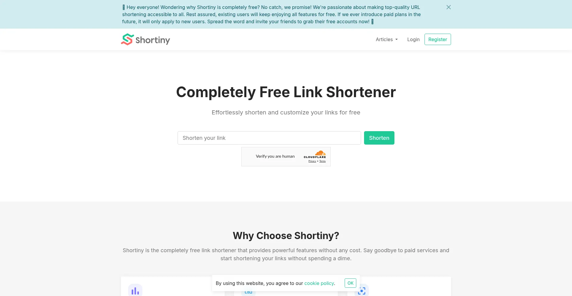 Shortiny is the completely free link shortener tool that allows you to shorten your links without any cost. Start shortening your links for free.