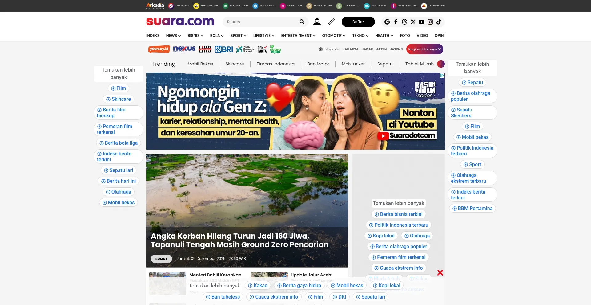 Dapatkan berita terkini dan terpercaya dari Suara.com. Informasi lengkap seputar politik, bisnis, hukum, sepak bola, entertainment, gaya hidup, otomotif, sains & teknologi, sert...
