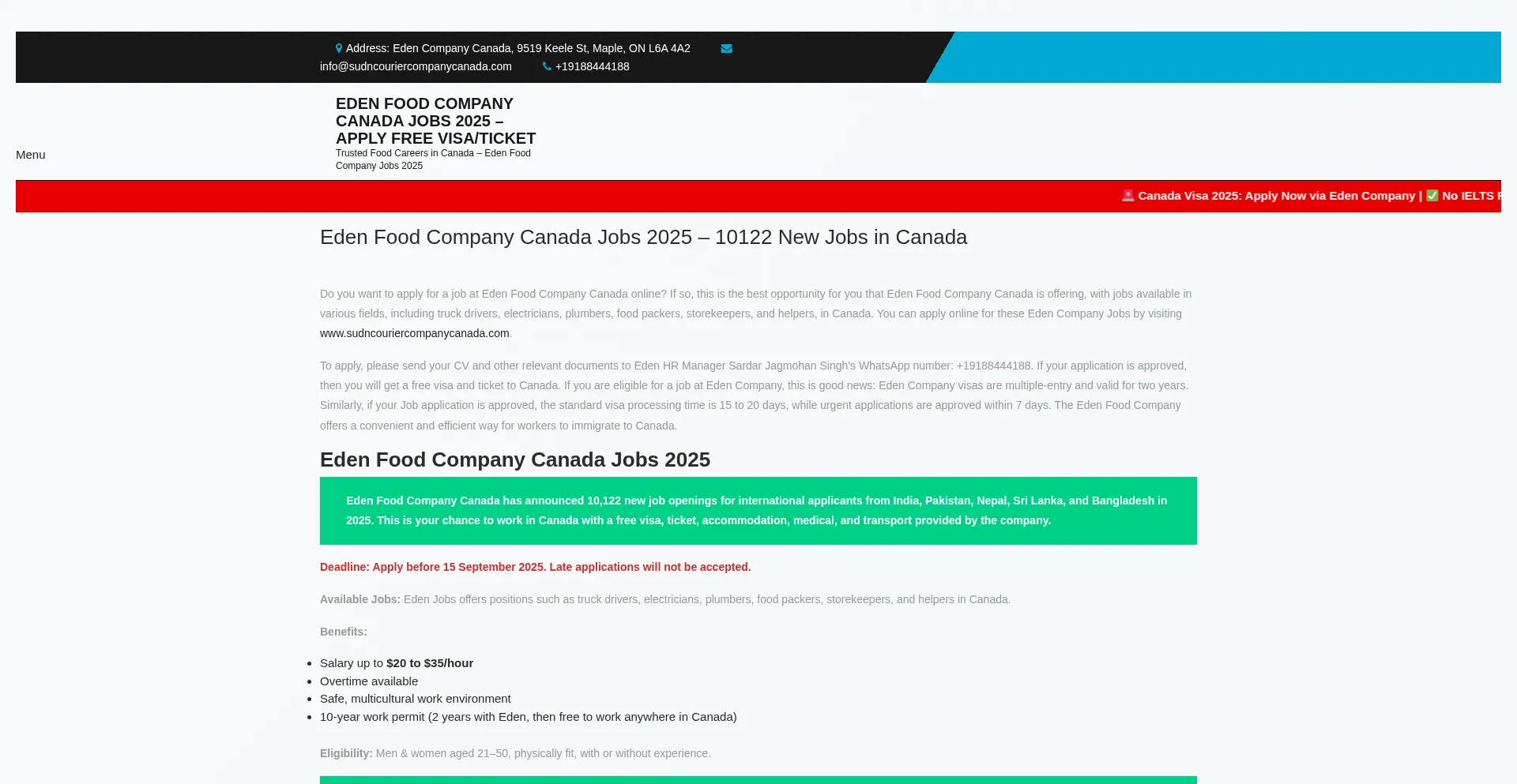Eden Company Canada Jobs 2025 - Jobs are Open, Visa Ticket Free