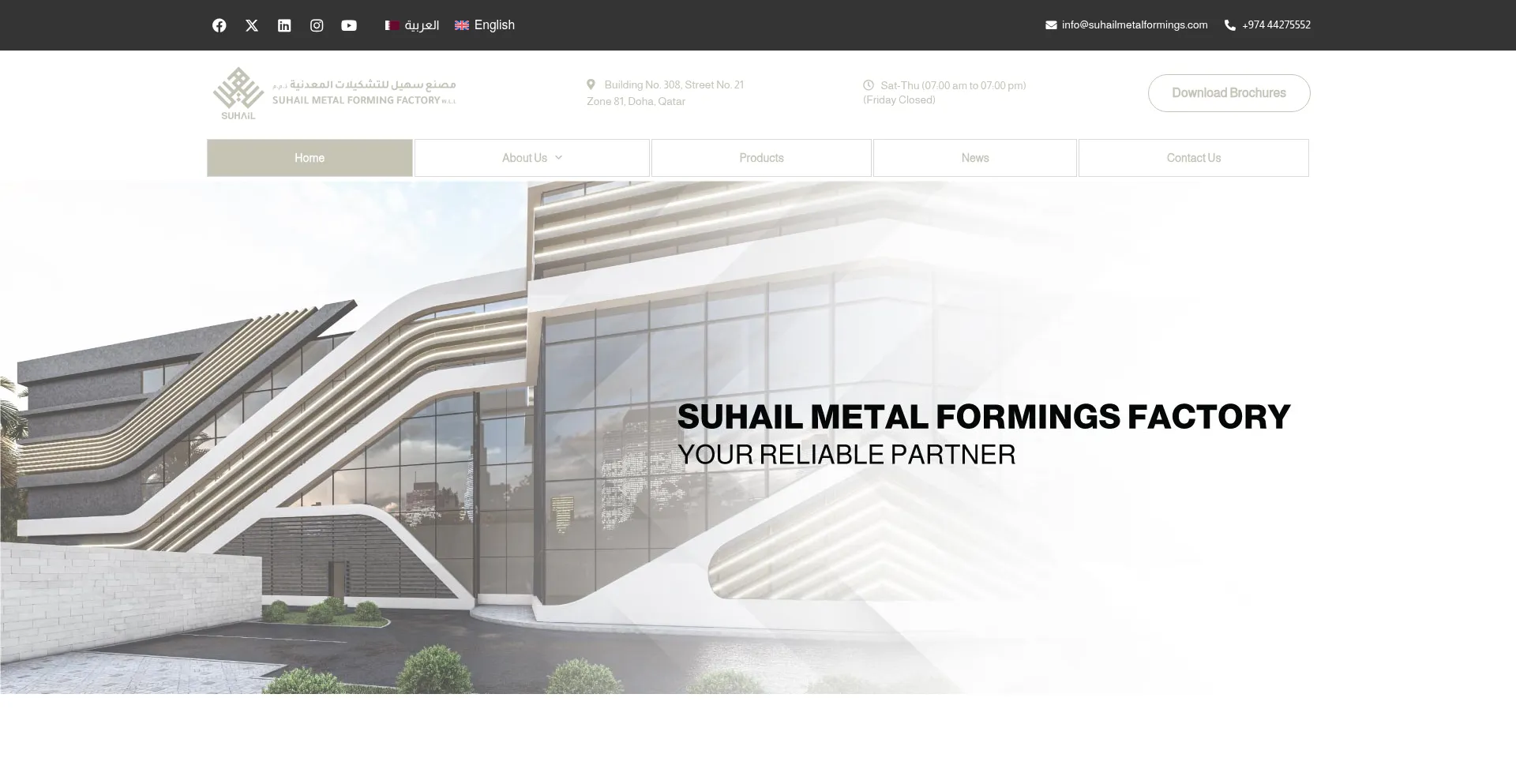 网站上存在社交媒体链接表明 suhailmetalformings.com 在社交媒体上维护官方账户,这是可信度和参与度的积极信号。