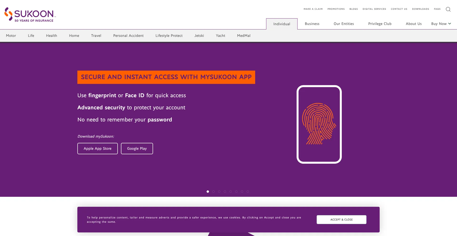 该网站实现符合GDPR或CCPA等隐私法规的cookie同意机制。这表明 sukoon.com 遵守数据保护标准并为用户提供对个人数据收集实践的控制。