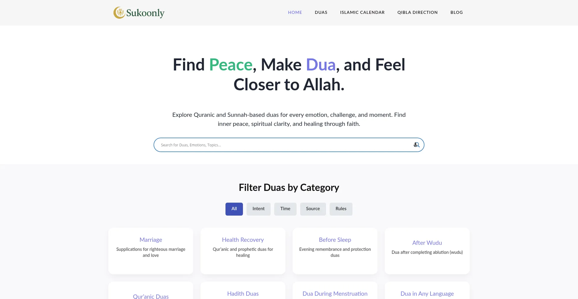 Sukoonly – Authentic Islamic Duas for Peace & Healing
