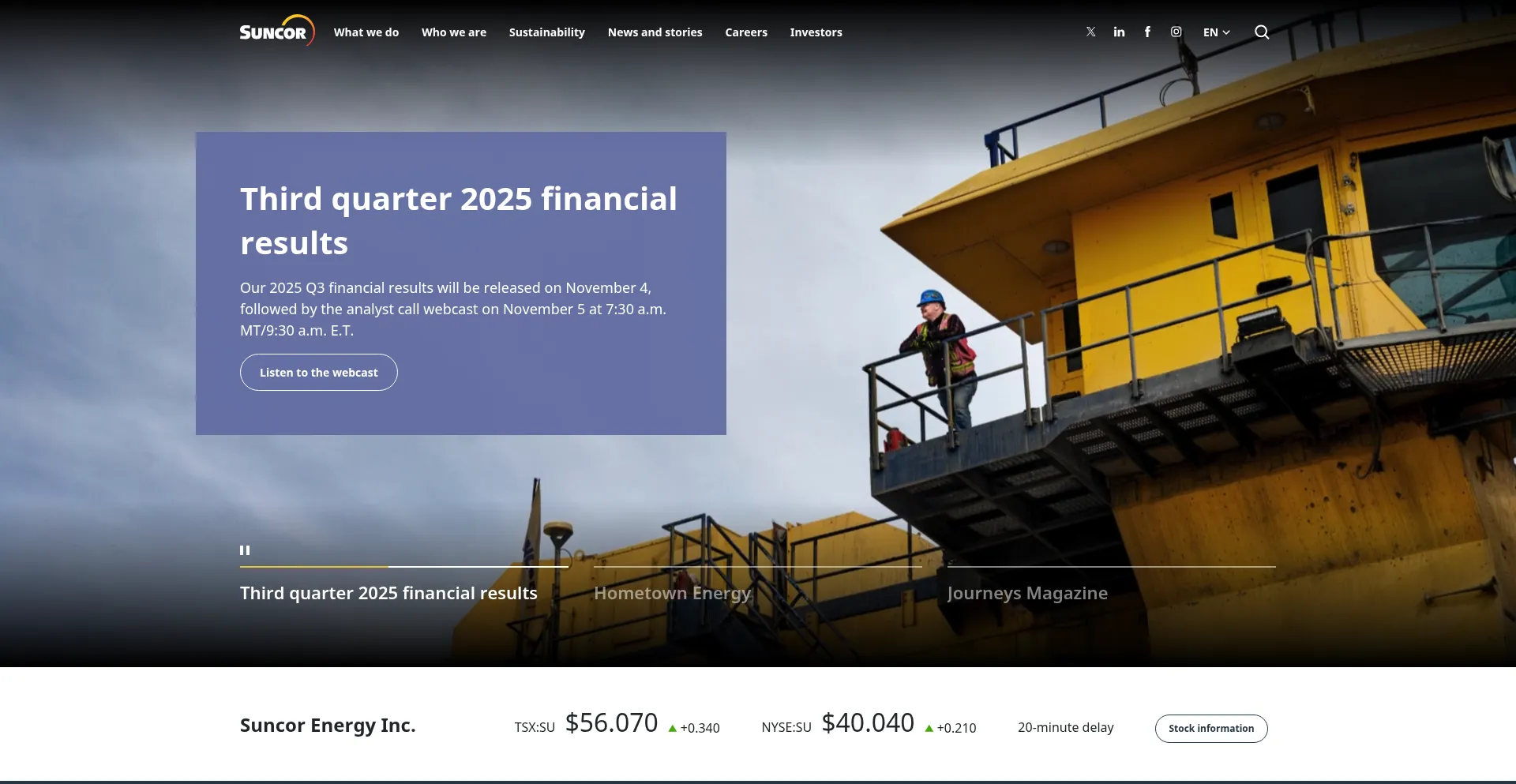 网站上存在社交媒体链接表明 suncor.com 在社交媒体上维护官方账户,这是可信度和参与度的积极信号。