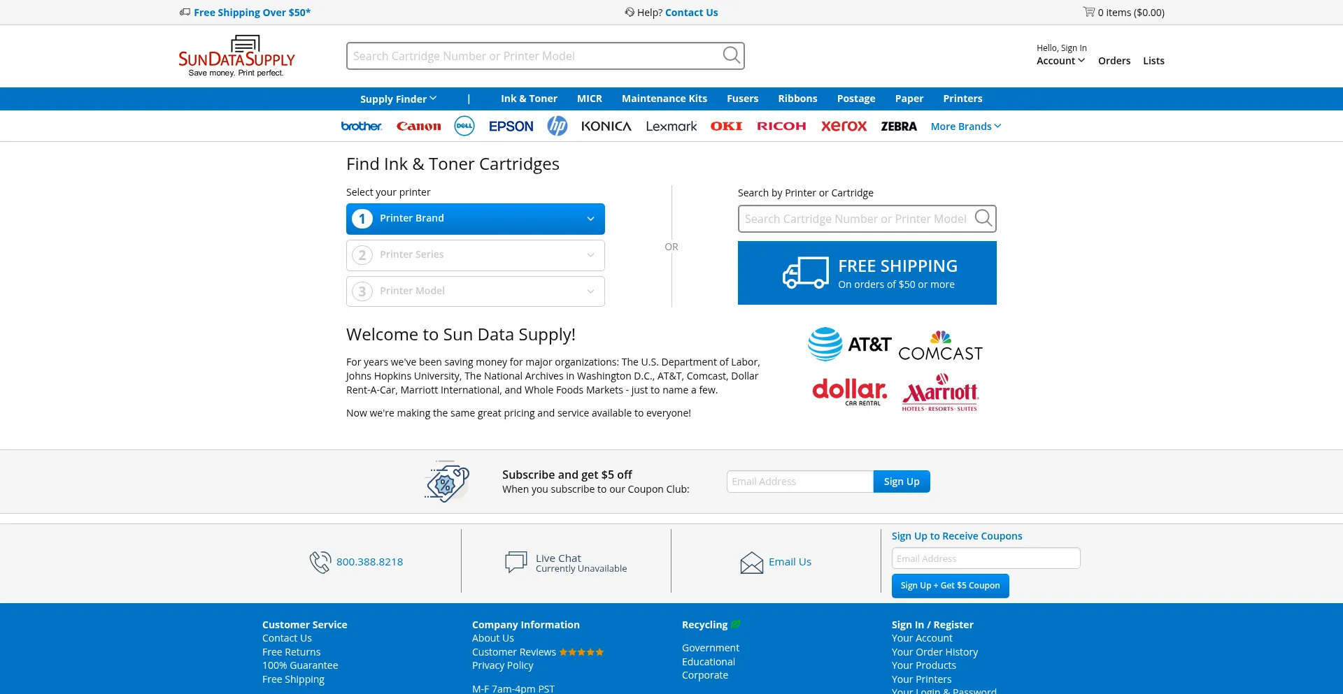 Sun Data Supply - Laser Toner Cartridges, Printer Cartridges, MICR Toner Cartridges, Copier Toners, Fax Toners and Ribbons
