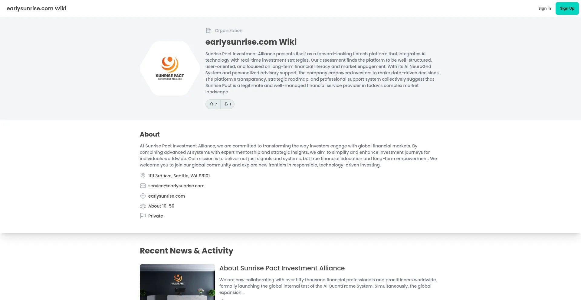 Explore Sunrise Pact Investment Alliance Overview and Wiki for company insights, AI trading features, expert analysis, and verified user reviews. Learn why it's gaining trust am...