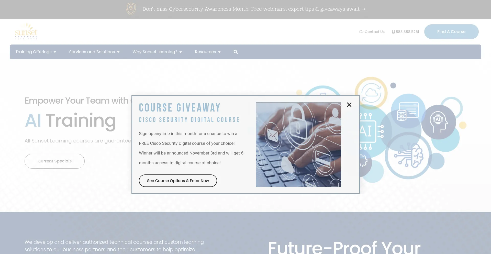 Unlock your potential with technical training and learning solutions from Sunset Learning Institute. We cater to top technology vendors like Cisco, AWS, & more!