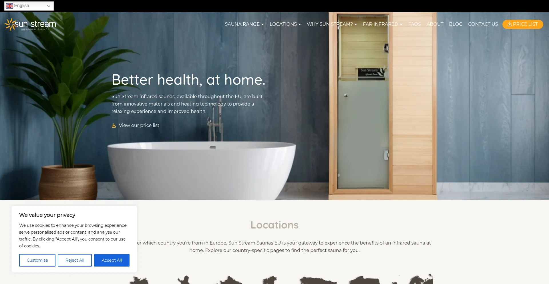该网站实现符合GDPR或CCPA等隐私法规的cookie同意机制。这表明 sunstreamsaunas.eu 遵守数据保护标准并为用户提供对个人数据收集实践的控制。