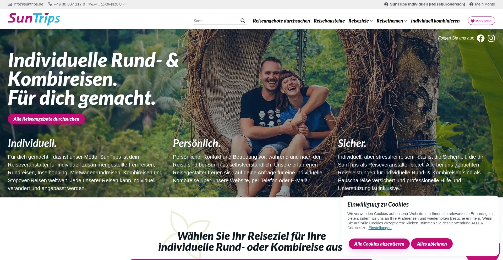 Dein Reiseveranstalter für individuell zusammengestellte Rundreisen, Kombireisen, Inselhopping und Mietwagenrundreisen weltweit. Individuell. Persönlich. Sicher.
