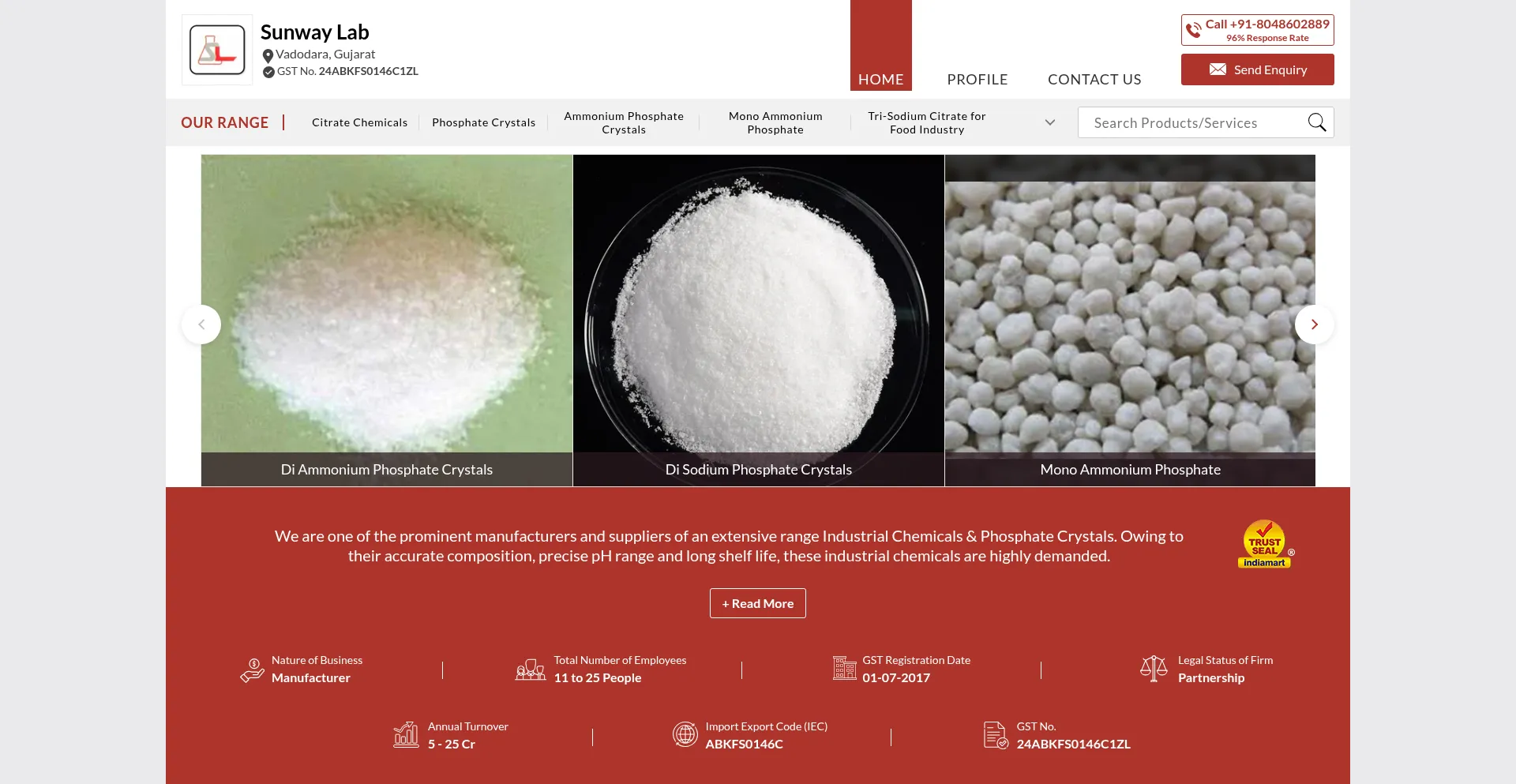 Sunway Lab - Manufacturer of Citrate Chemicals, Phosphate Crystals & Ammonium Phosphate Crystals from Vadodara, Gujarat, India