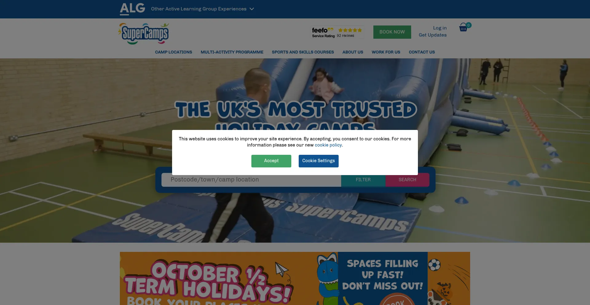 该网站实现符合GDPR或CCPA等隐私法规的cookie同意机制。这表明 supercamps.co.uk 遵守数据保护标准并为用户提供对个人数据收集实践的控制。