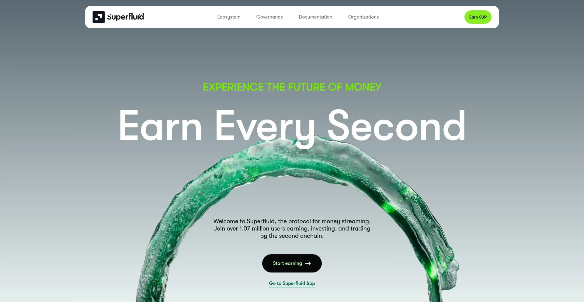 Earn every second. Superfluid is the money streaming protocol, powering apps for earning, investing, and trading by the second onchain.