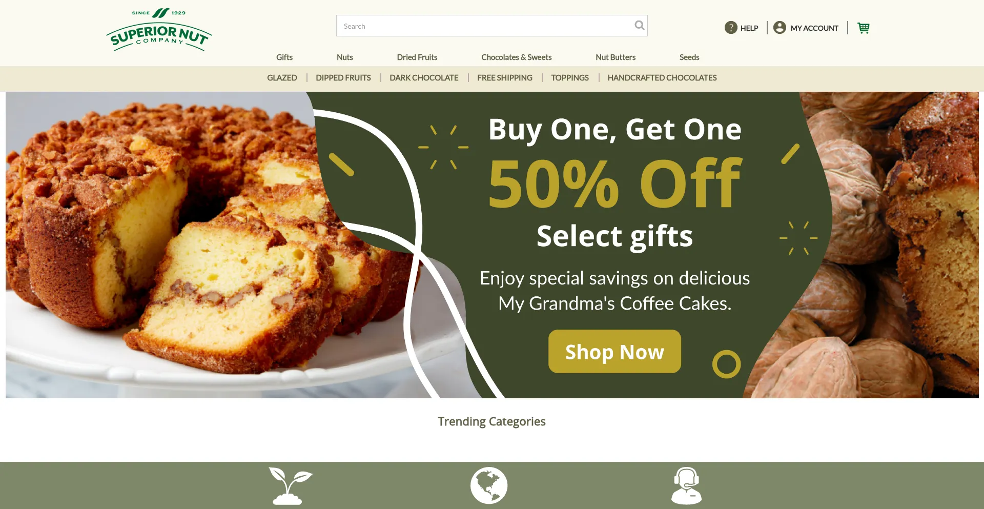 Gourmet Nuts, Dried Fruits, Nut Gifts at discounted prices. Delighting customers with gourmet nuts since 1929.
