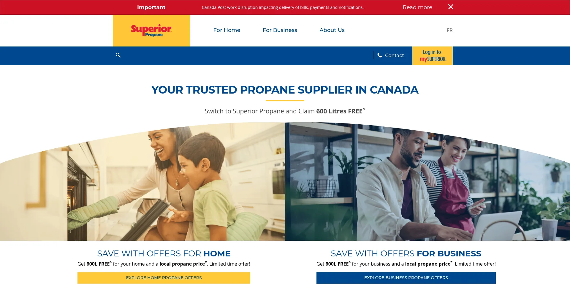 该网站实现数据收集表单,请求个人信息,包括姓名、电子邮件地址、电话号码或其他敏感详细信息。用户应验证 superiorpropane.com 的合法性并在提交个人数据前查看隐私政策。
