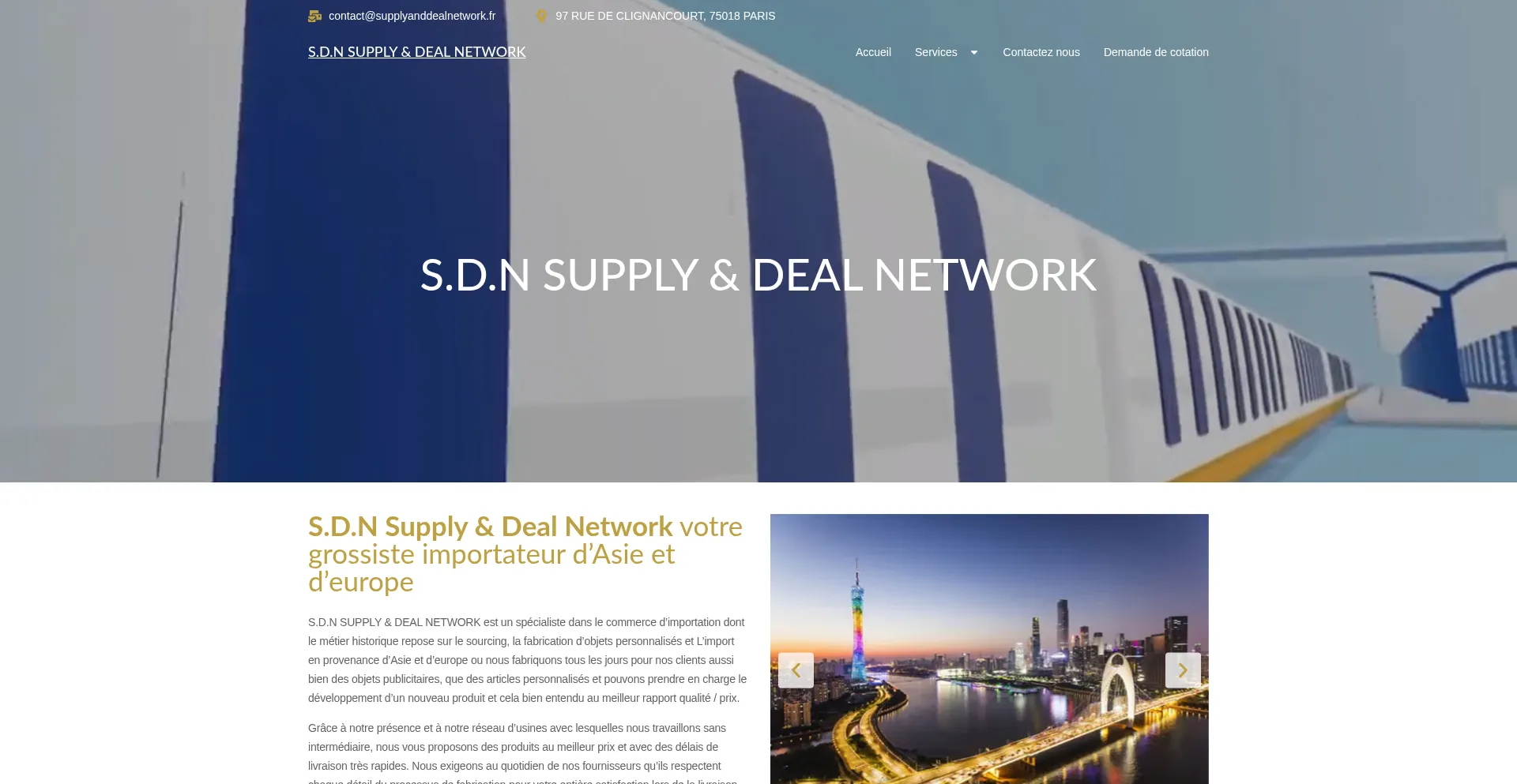 S.D.N SUPPLY & DEAL NETWORK est un spécialiste dans le commerce d’importation dont le métier historique repose sur le sourcing, la fabrication d’objets personnalisés et L...