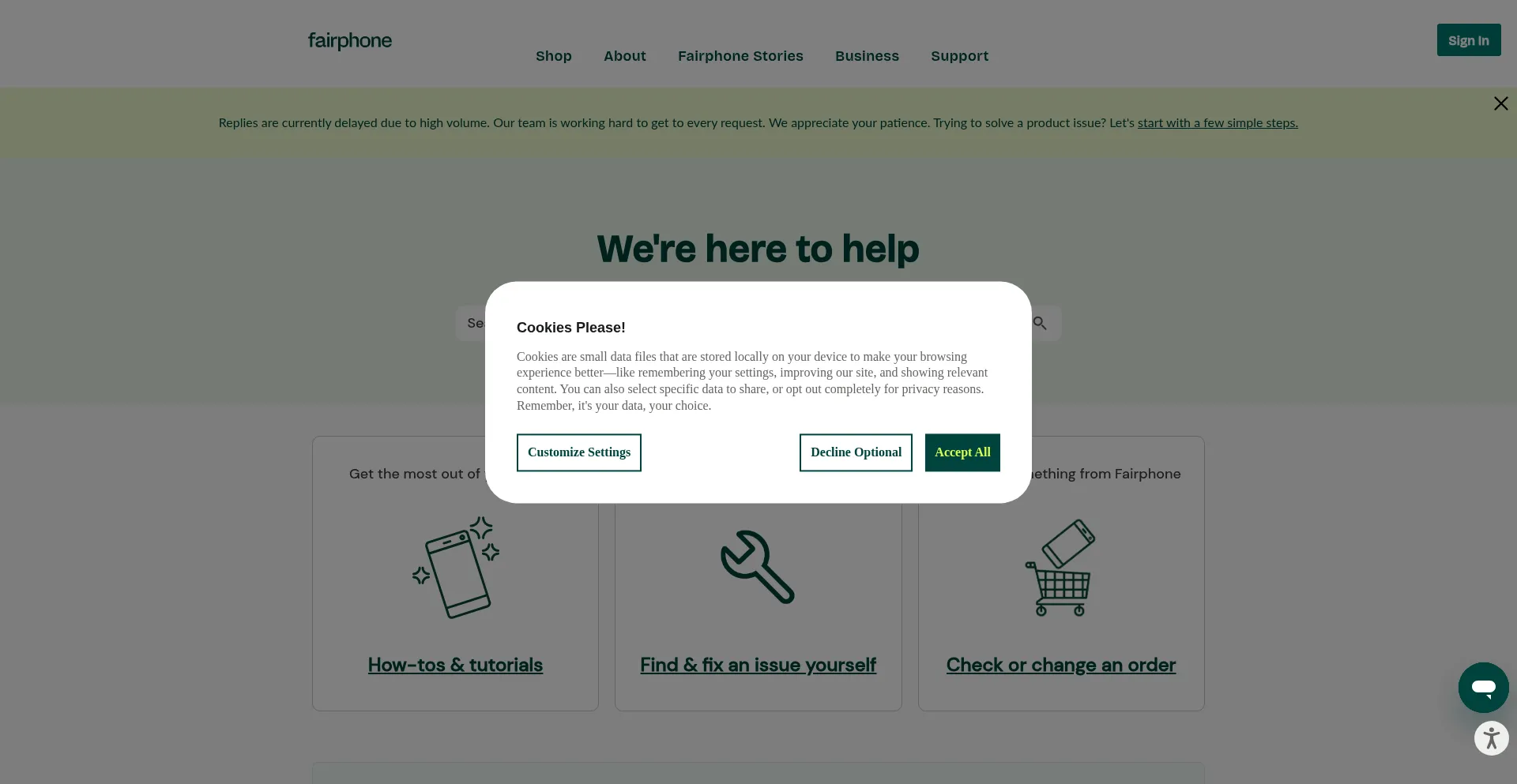 support.fairphone.com 使用 Google Tag Manager 在其网站上添加和更新追踪代码(标签)。
