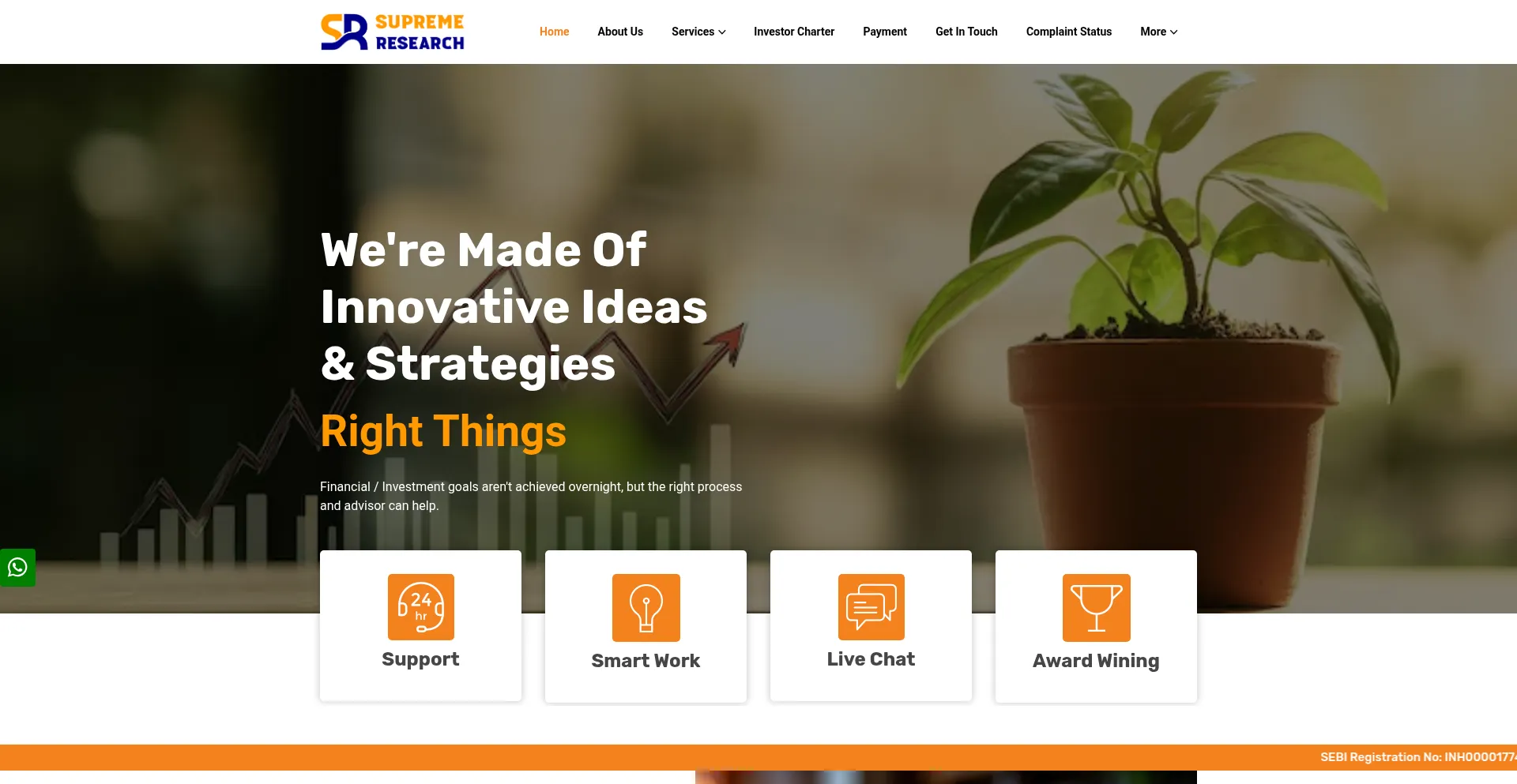 分析显示 supremeresearch.in 显示社交媒体图标或链接,但不连接到合法的社交媒体档案。这种欺骗性做法通常用于创造虚假合法性,代表需要立即谨慎的欺诈意图的重要指标。