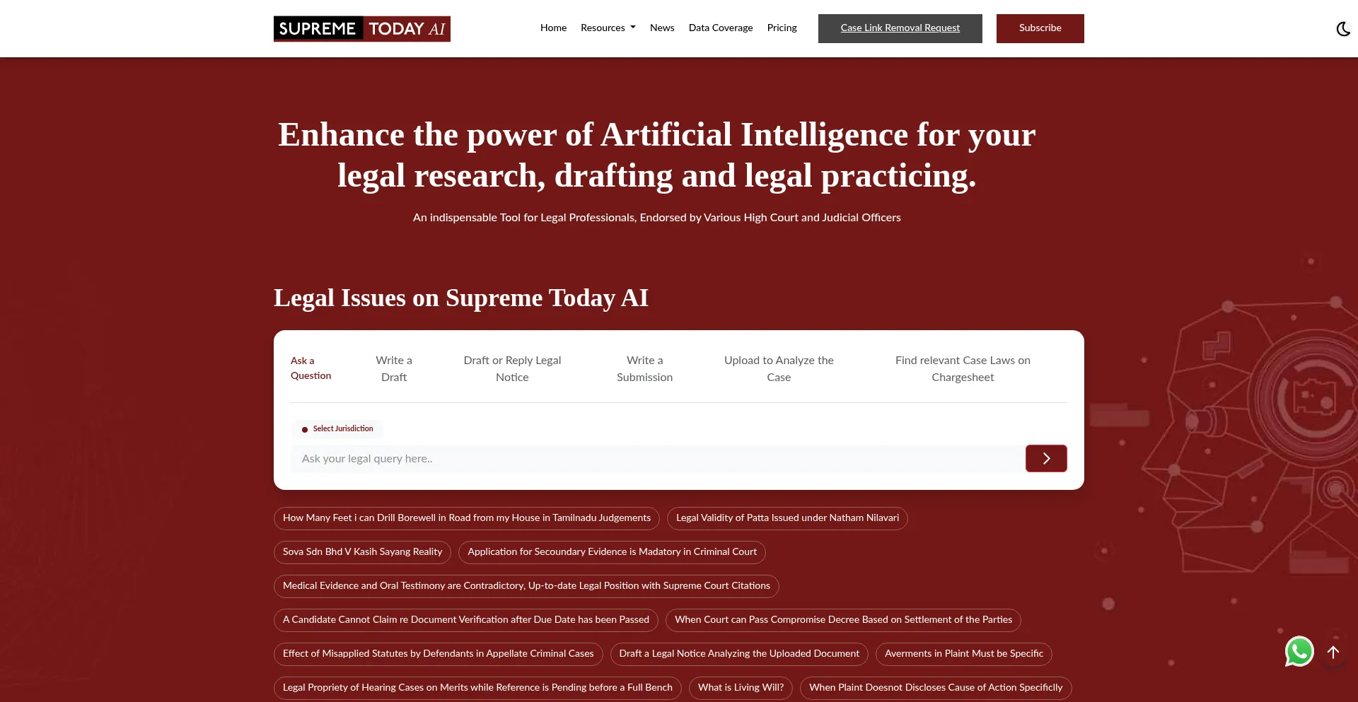 Enhance the power of AI for your Legal Research and Drafting | Supreme Today AI