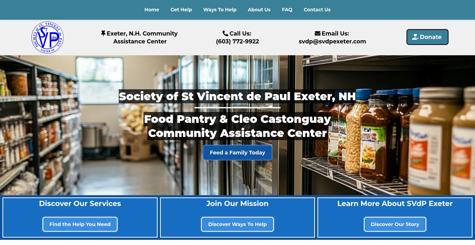 St. Vincent de Paul, Exeter, NH provides food, assistance, and support to those in need. Learn how to volunteer, donate, or get help today.