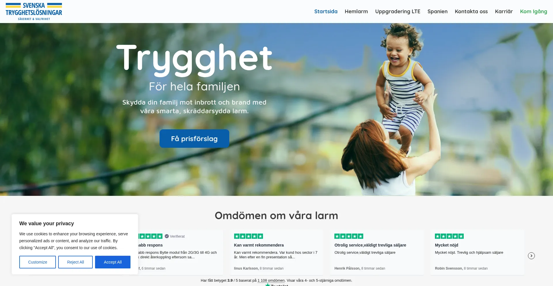 网站上存在社交媒体链接表明 svenskatrygghetslosningar.se 在社交媒体上维护官方账户,这是可信度和参与度的积极信号。