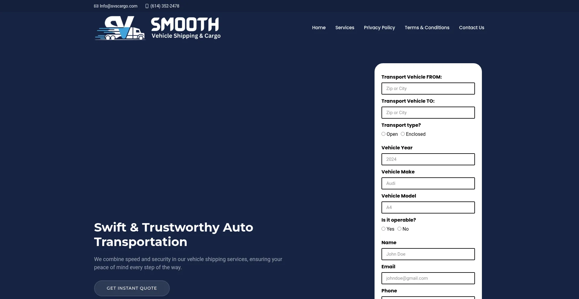 svscargo.com 使用 Bootstrap,这是一个广泛采用的开源响应式网页开发框架。Bootstrap 通过标准化组件和样式实现移动友好界面的高效创建。