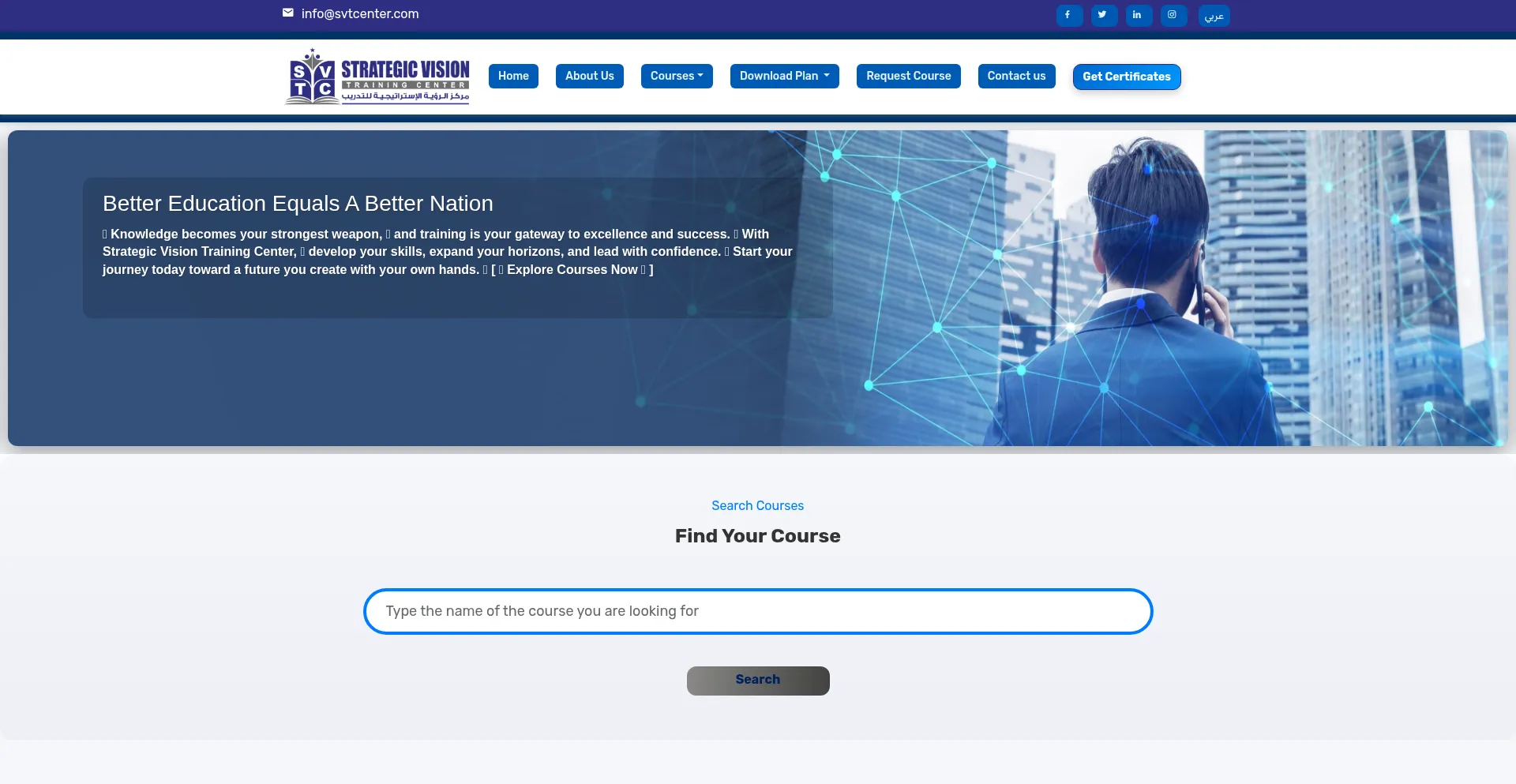 The Strategic Vision Training Center provides training courses ,administrative training, human resources, engineering, technical, financial, and banking