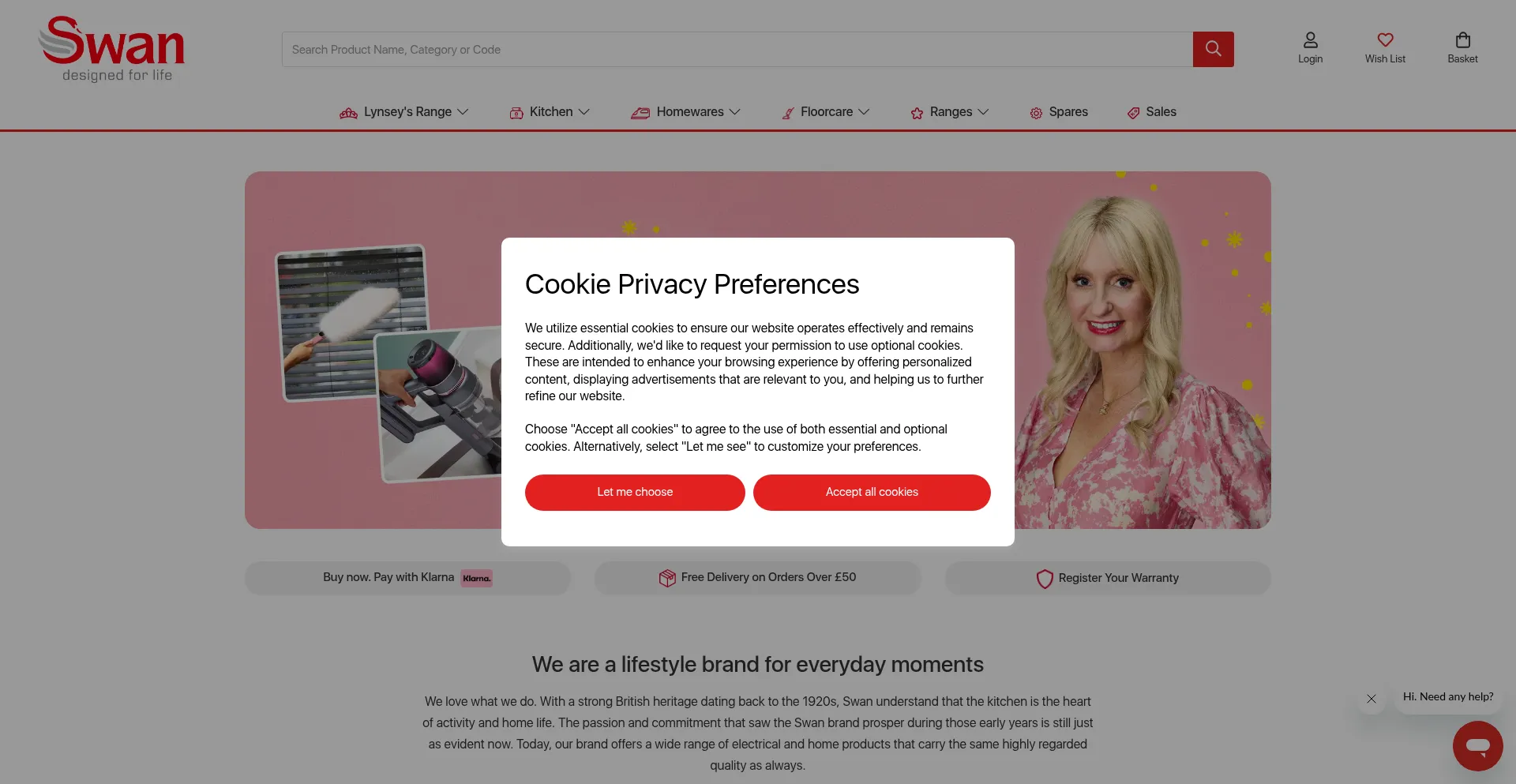 该网站实现符合GDPR或CCPA等隐私法规的cookie同意机制。这表明 swan-brand.co.uk 遵守数据保护标准并为用户提供对个人数据收集实践的控制。