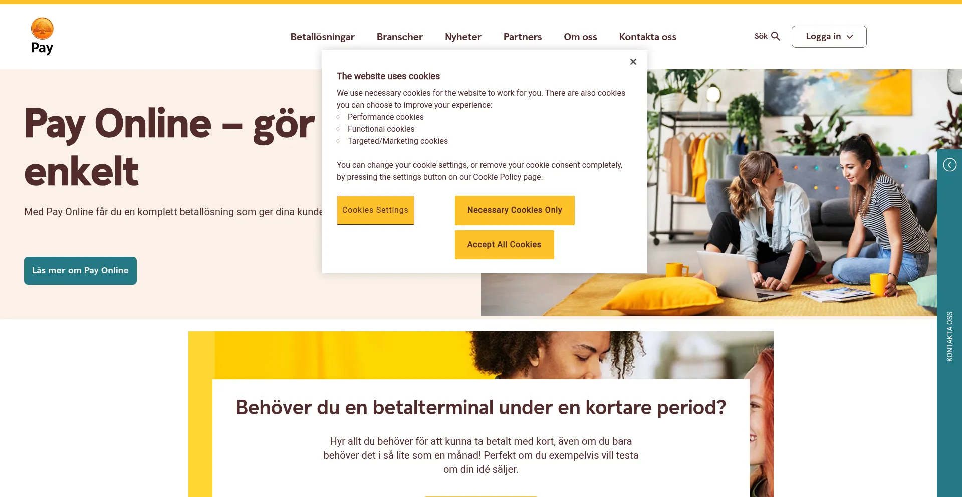 该网站实现符合GDPR或CCPA等隐私法规的cookie同意机制。这表明 swedbankpay.se 遵守数据保护标准并为用户提供对个人数据收集实践的控制。