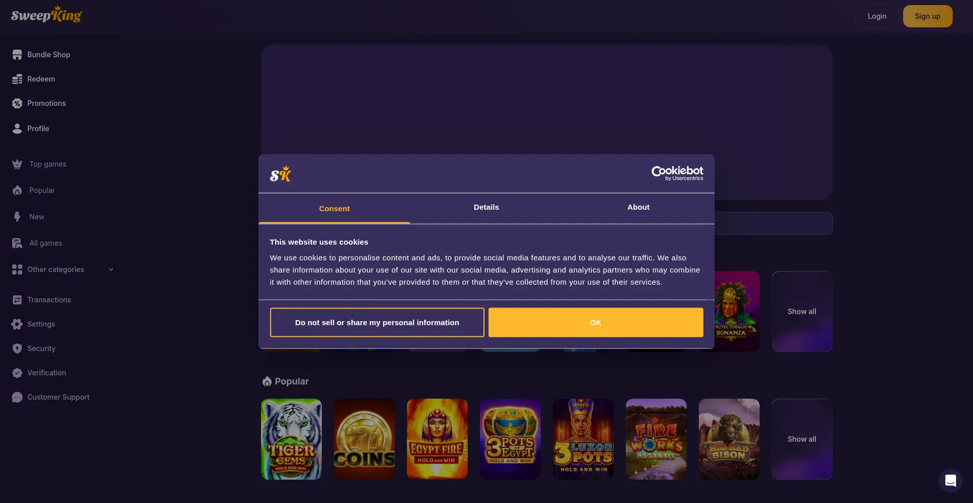 该网站实现符合GDPR或CCPA等隐私法规的cookie同意机制。这表明 sweepking.com 遵守数据保护标准并为用户提供对个人数据收集实践的控制。