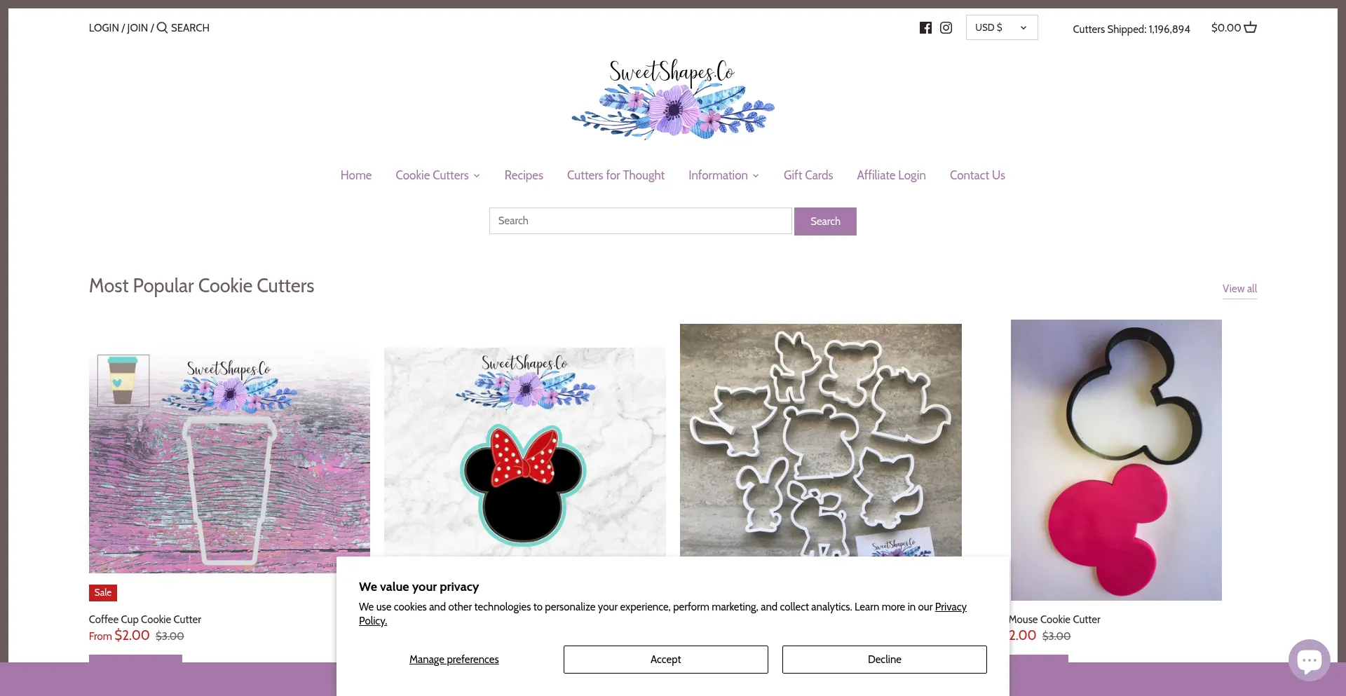 该网站实现符合GDPR或CCPA等隐私法规的cookie同意机制。这表明 sweetshapesco.com 遵守数据保护标准并为用户提供对个人数据收集实践的控制。