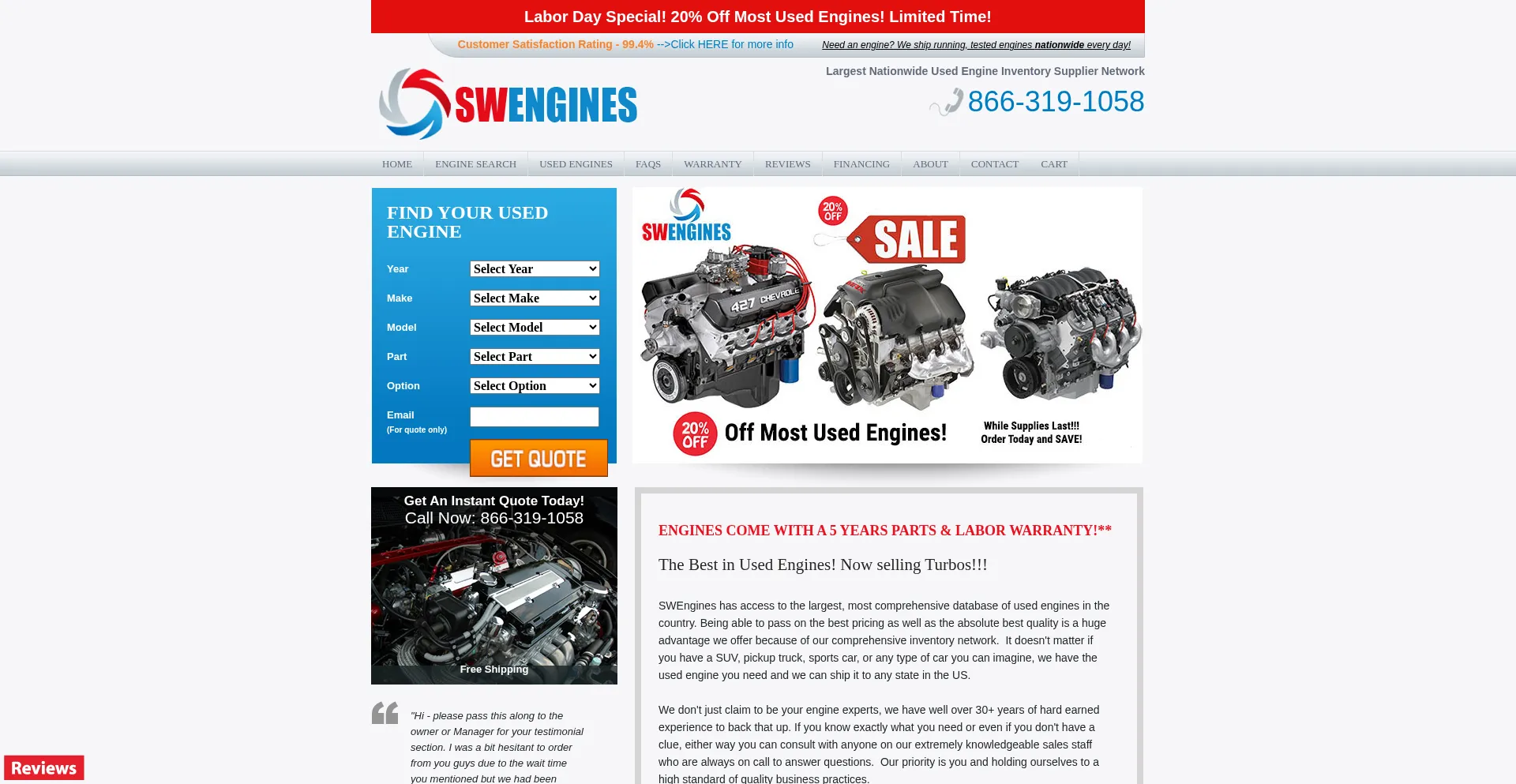 SWEngines Is The Largest Used Engine Database In The U.S. Offering The Lowest Prices & Highest Quality Used Engines. Fill Out Your Instant Quote Today!