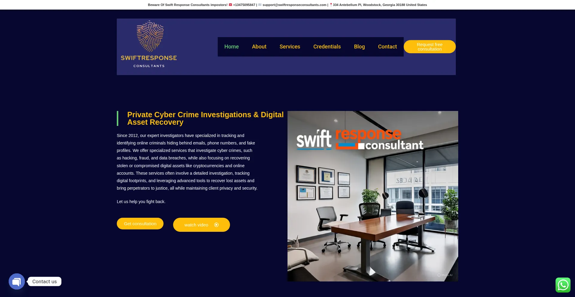 网站 swiftresponseconsultants.com 宣传针对丢失或被盗资产的资金恢复服务。虽然一些在应急费用结构上运营,其他可能需要预付款,这可能表明欺诈运营。在聘请此类服务前验证凭据和监管合规性。