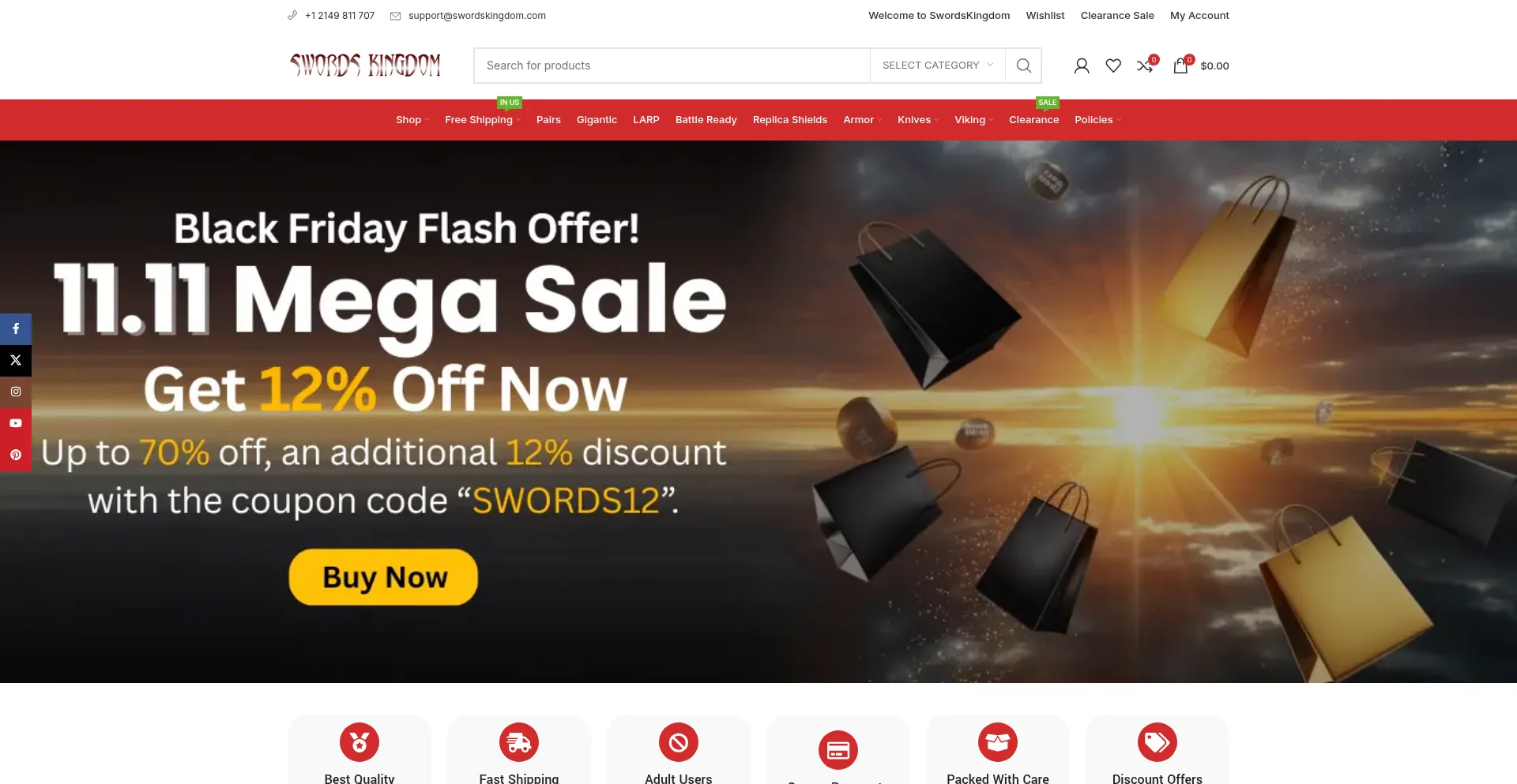 网站上存在社交媒体链接表明 swordskingdom.com 在社交媒体上维护官方账户,这是可信度和参与度的积极信号。