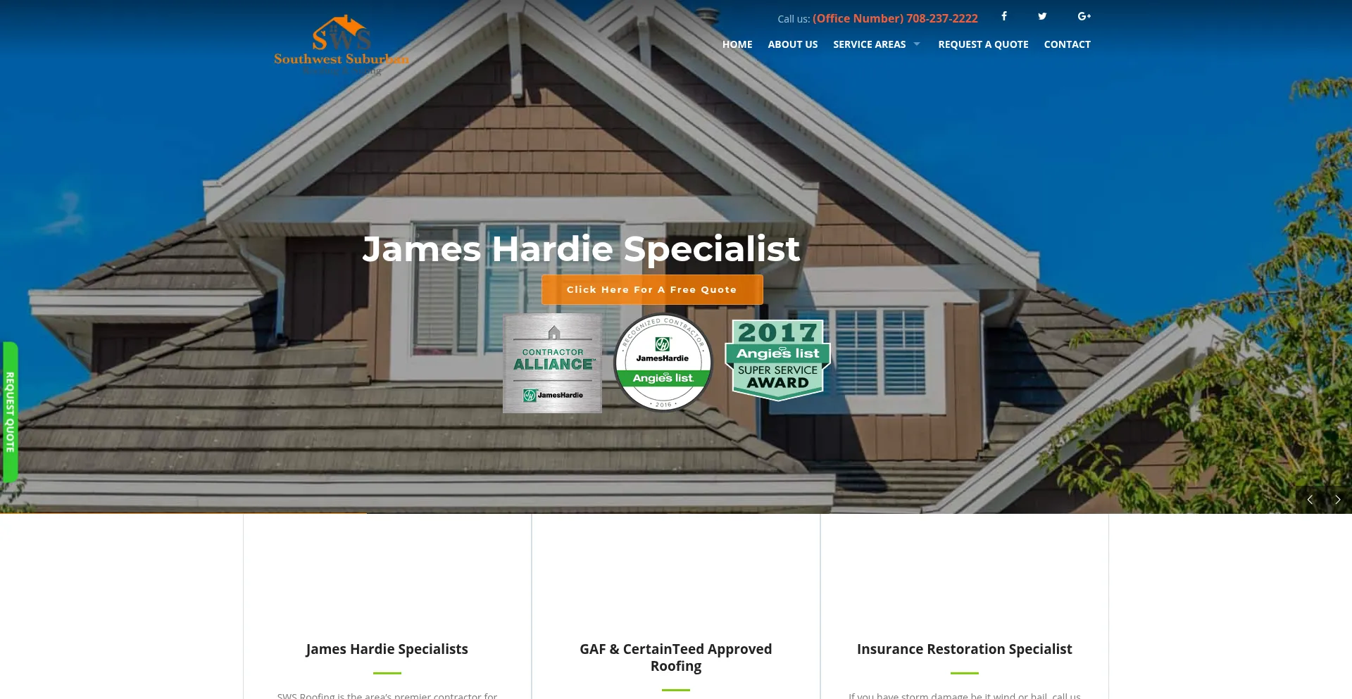 网站上存在社交媒体链接表明 swsroofing.com 在社交媒体上维护官方账户,这是可信度和参与度的积极信号。