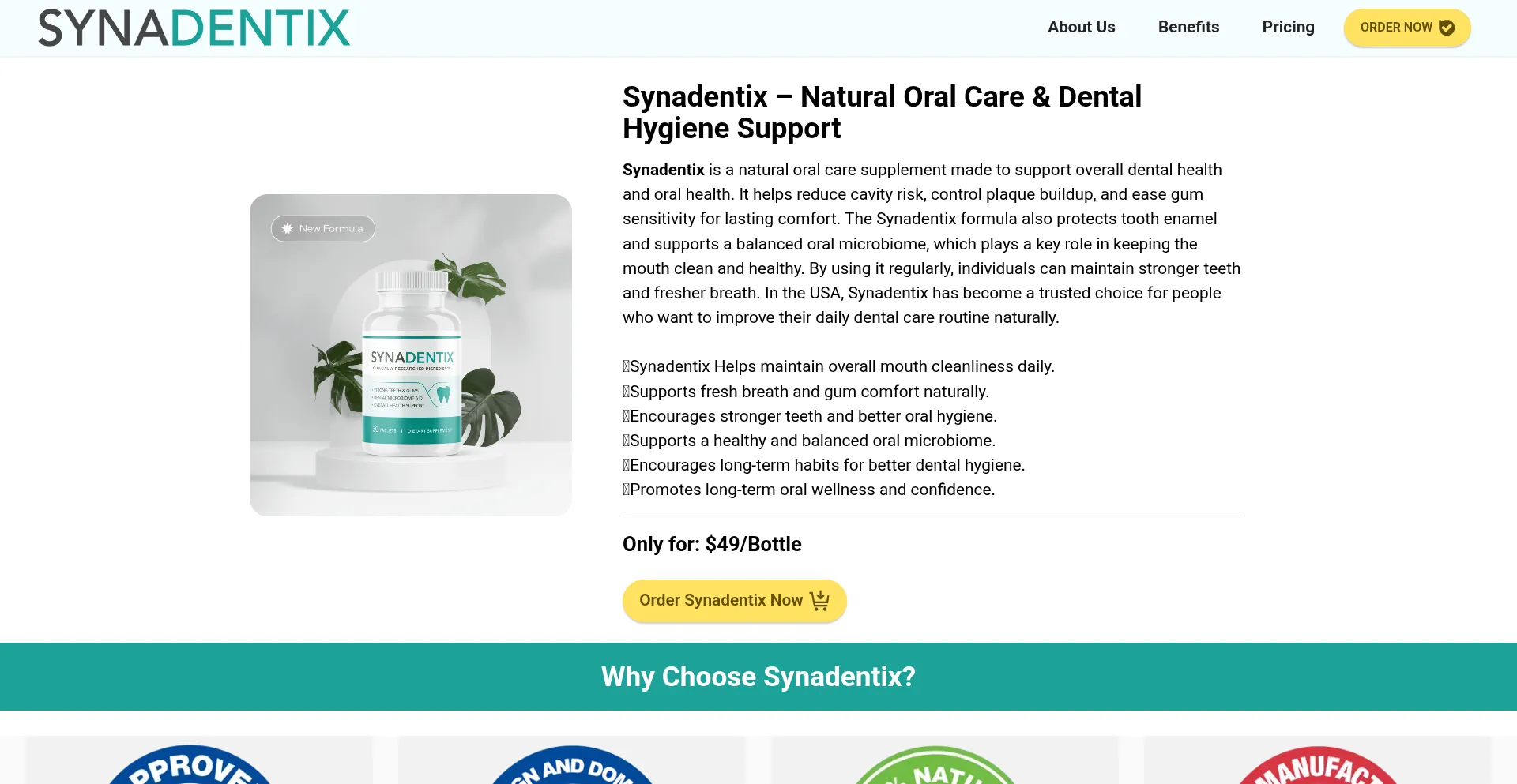 Synadentix is a natural dental health supplement that supports stronger gums, cleaner teeth, fresh breath, and complete oral care for a healthier smile.